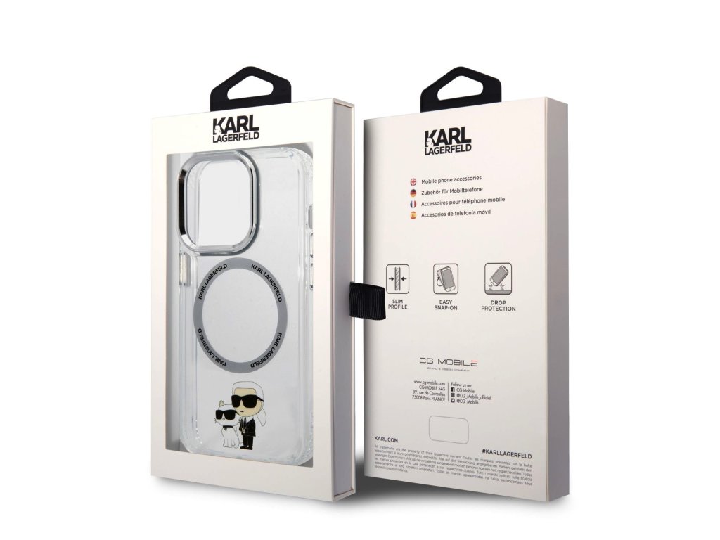 Karl Lagerfeld IML Karl and Choupette MagSafe Zadní Kryt pro iPhone 15 Pro Transparent