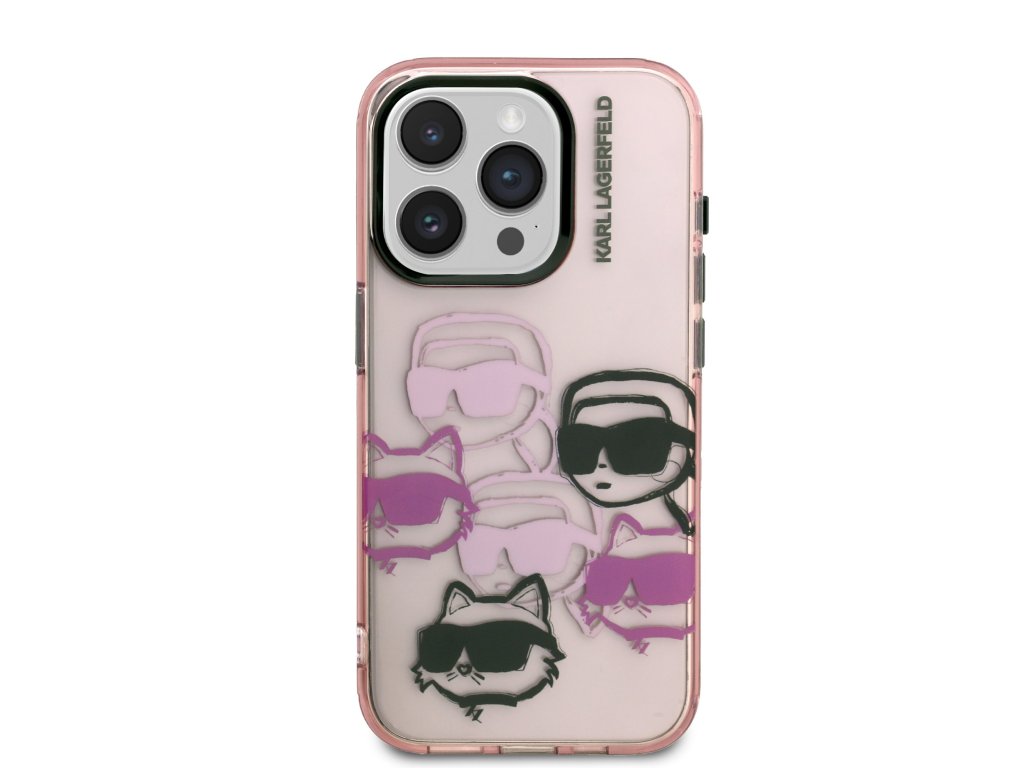 Karl Lagerfeld IML Multi K&CH Heads Zadní Kryt pro iPhone 15 Pro Pink