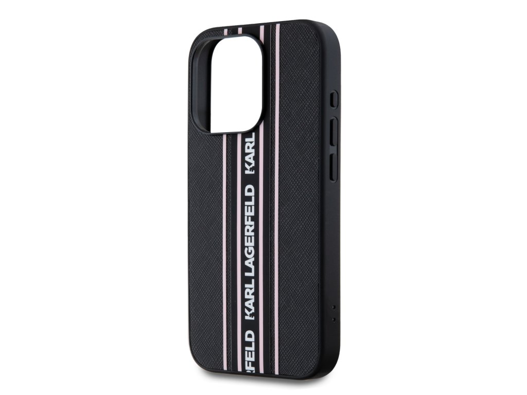 Karl Lagerfeld PU Saffiano Athleisure Stripe and Strap Zadní Kryt pro iPhone 15 Pro Pink