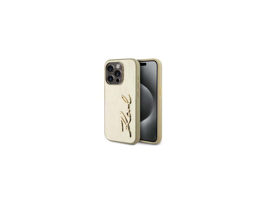 Karl Lagerfeld Wrinkled PU Signature Logo Zadní Kryt pro iPhone 15 Pro Gold