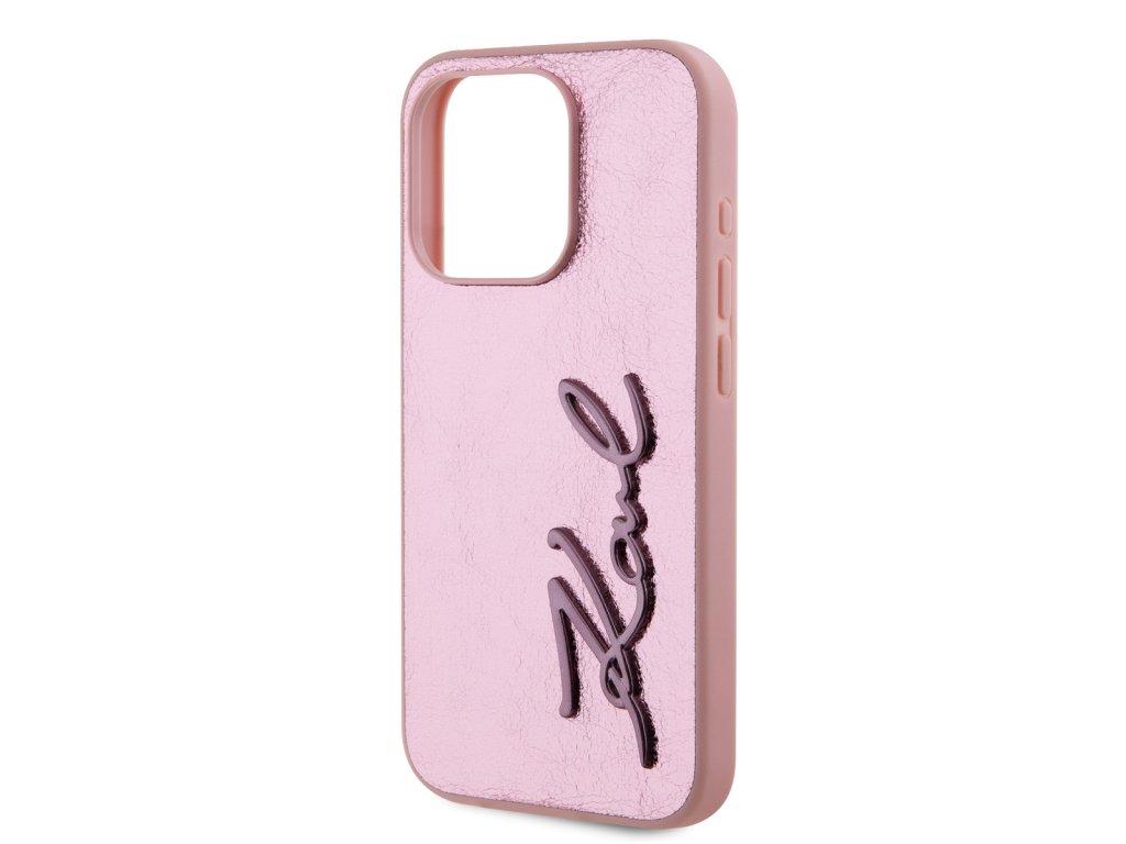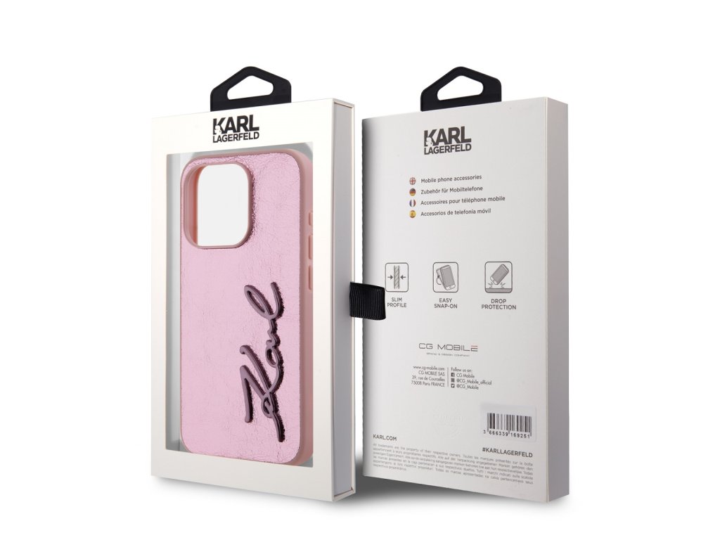 Karl Lagerfeld Wrinkled PU Signature Logo Zadní Kryt pro iPhone 15 Pro Pink