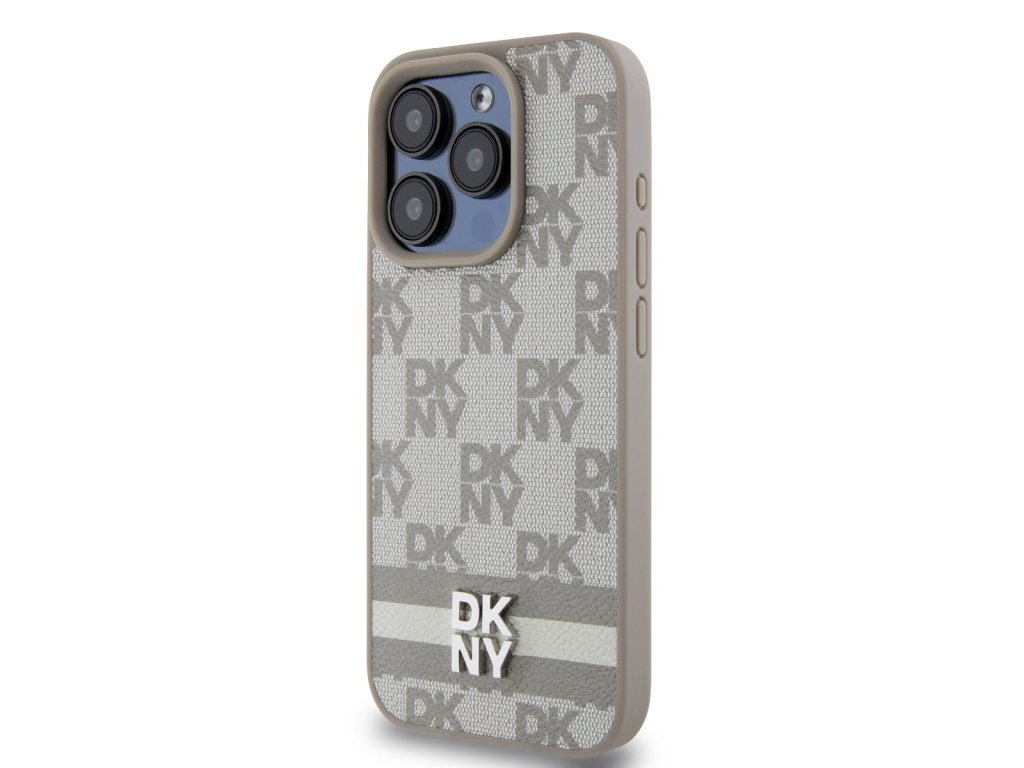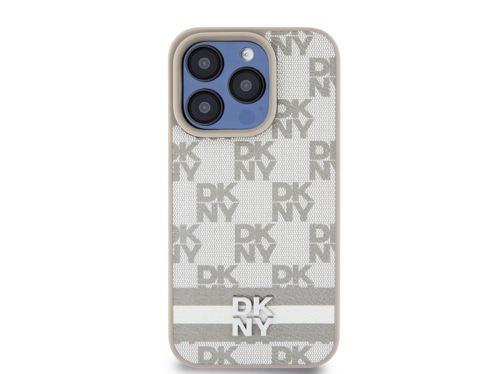 DKNY PU Leather Checkered Pattern and Stripe Zadní Kryt pro iPhone 15 Pro Max Beige