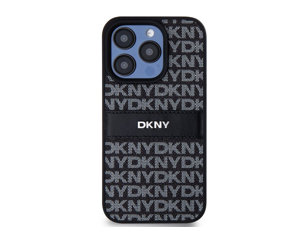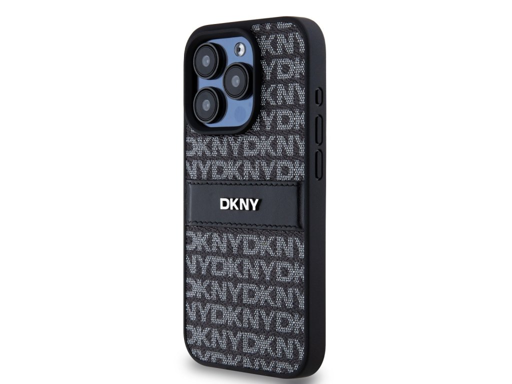 DKNY PU Leather Repeat Pattern Tonal Stripe Zadní Kryt pro iPhone 15 Pro Max Black