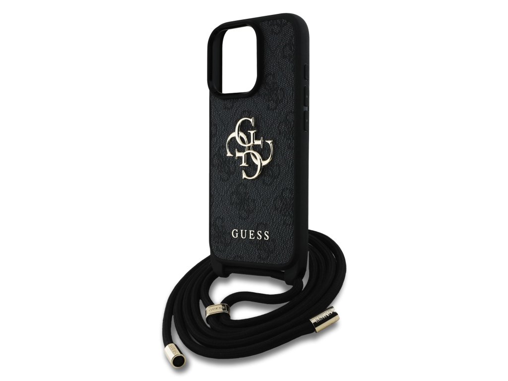 Guess PU 4G Metal Logo Crossbody Popruh Zadní Kryt pro iPhone 15 Pro Max Black