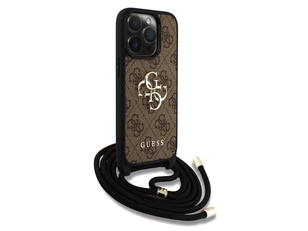 Guess PU 4G Metal Logo Crossbody Popruh Zadní Kryt pro iPhone 15 Pro Max Brown