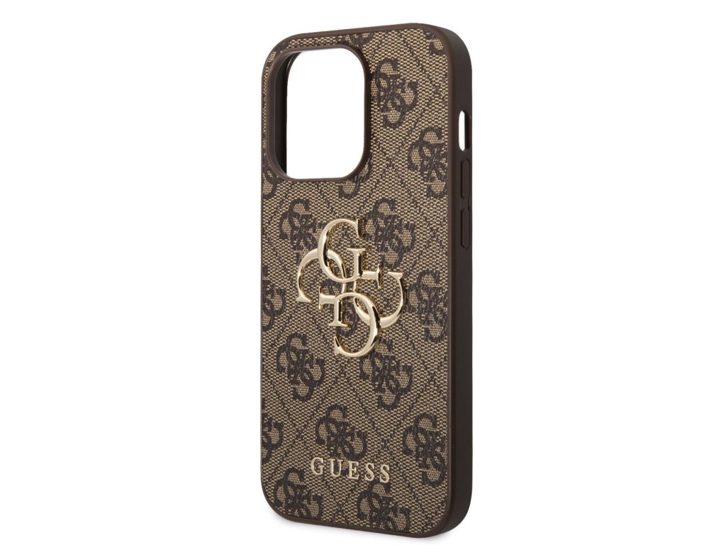 Guess PU 4G Metal Logo Zadní Kryt pro iPhone 15 Pro Max Brown