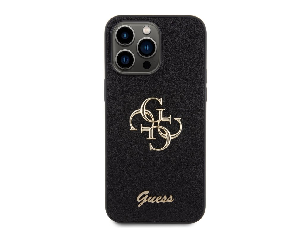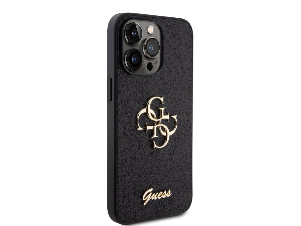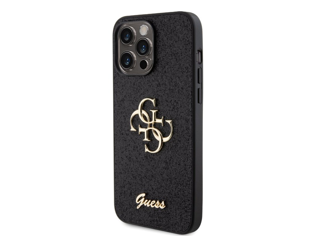 Guess PU Fixed Glitter 4G Metal Logo Zadní Kryt pro iPhone 15 Pro Max Black