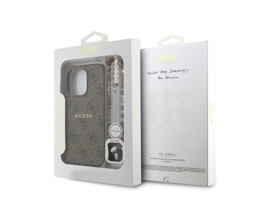 Guess PU Leather 4G Colored Ring Strap MagSafe Zadní Kryt pro iPhone 15 Pro Max Brown