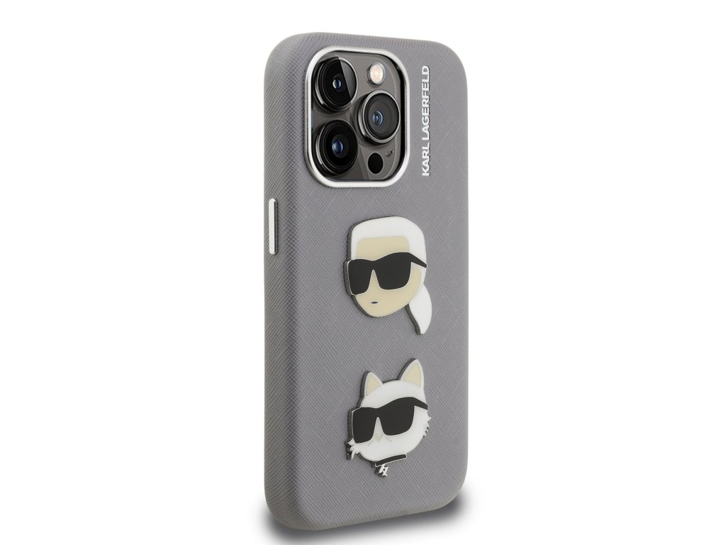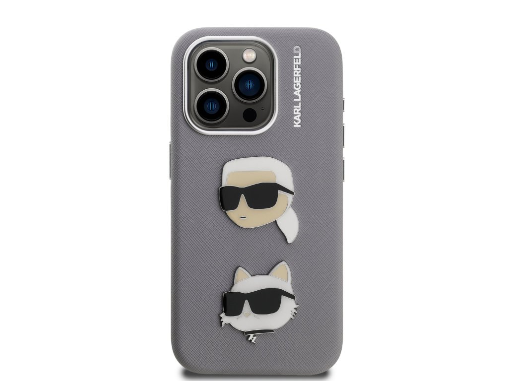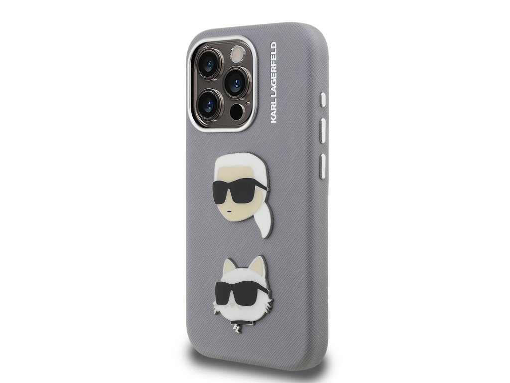 Karl Lagerfeld Grained PU K&CH Heads Zadní Kryt pro iPhone 15 Pro Max Grey