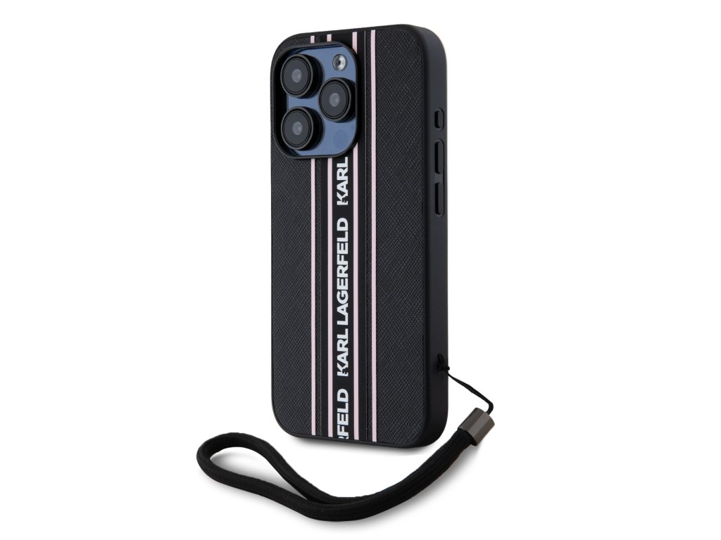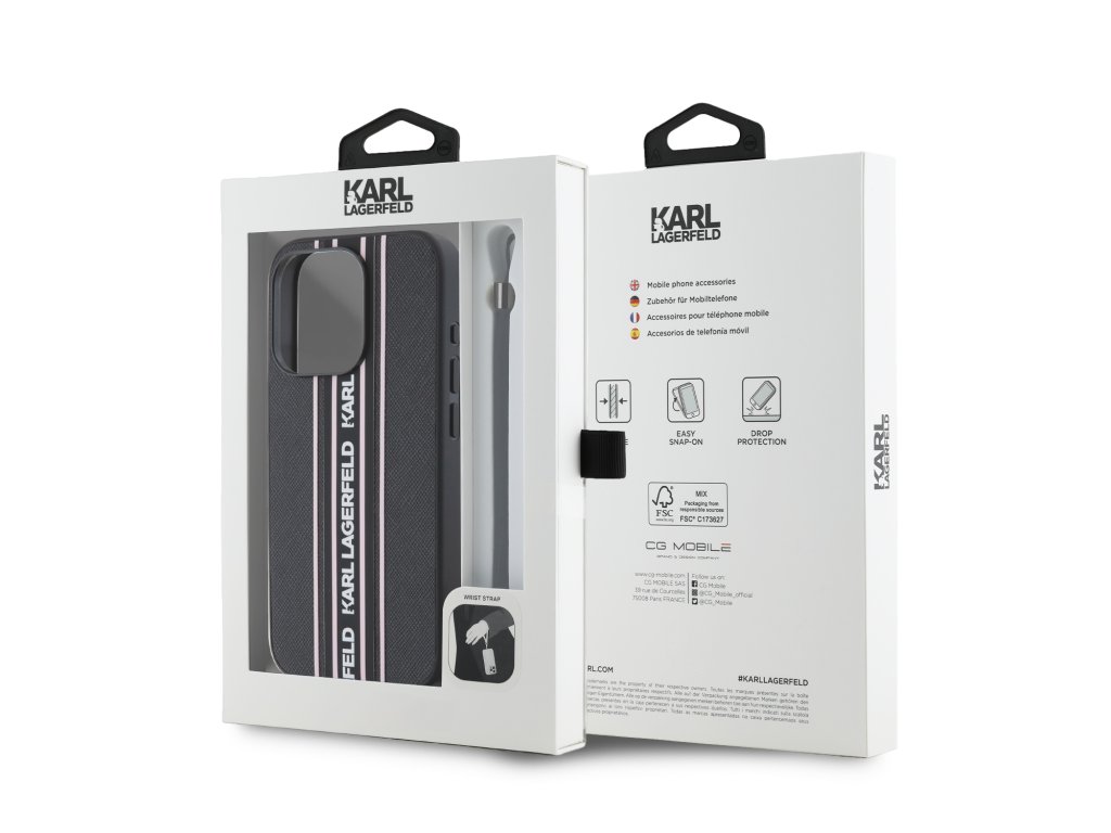 Karl Lagerfeld PU Saffiano Athleisure Stripe and Strap Zadní Kryt pro iPhone 15 Pro Max Pink
