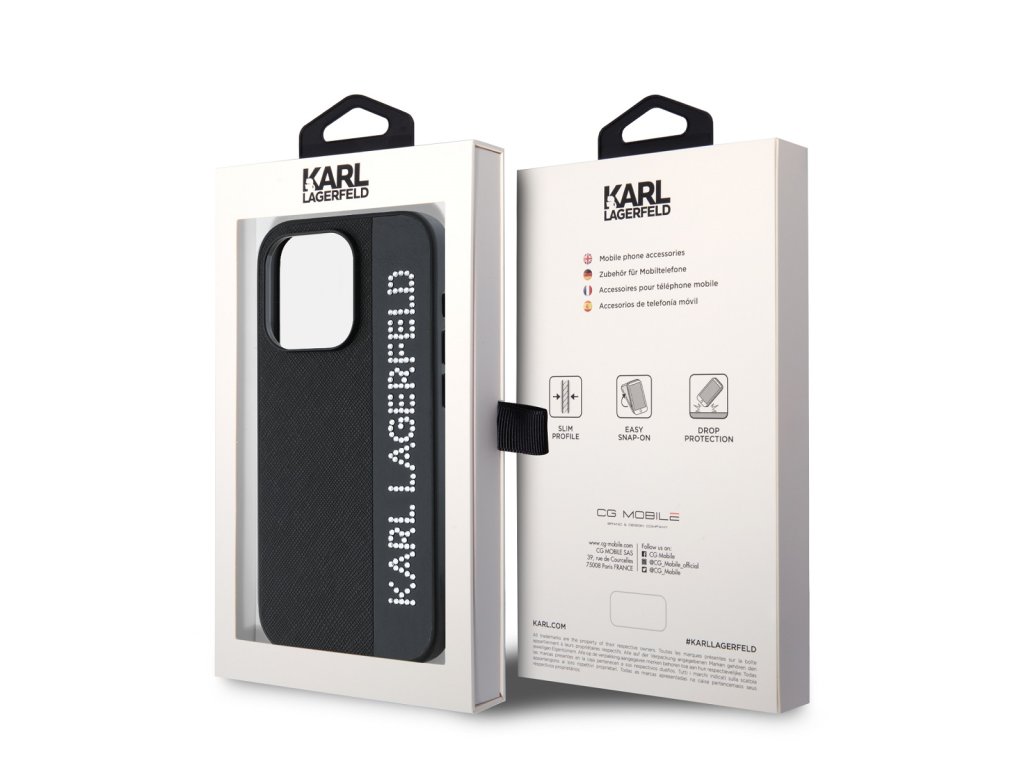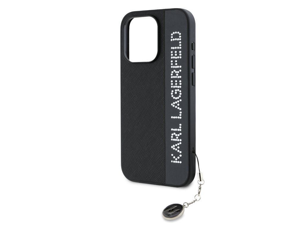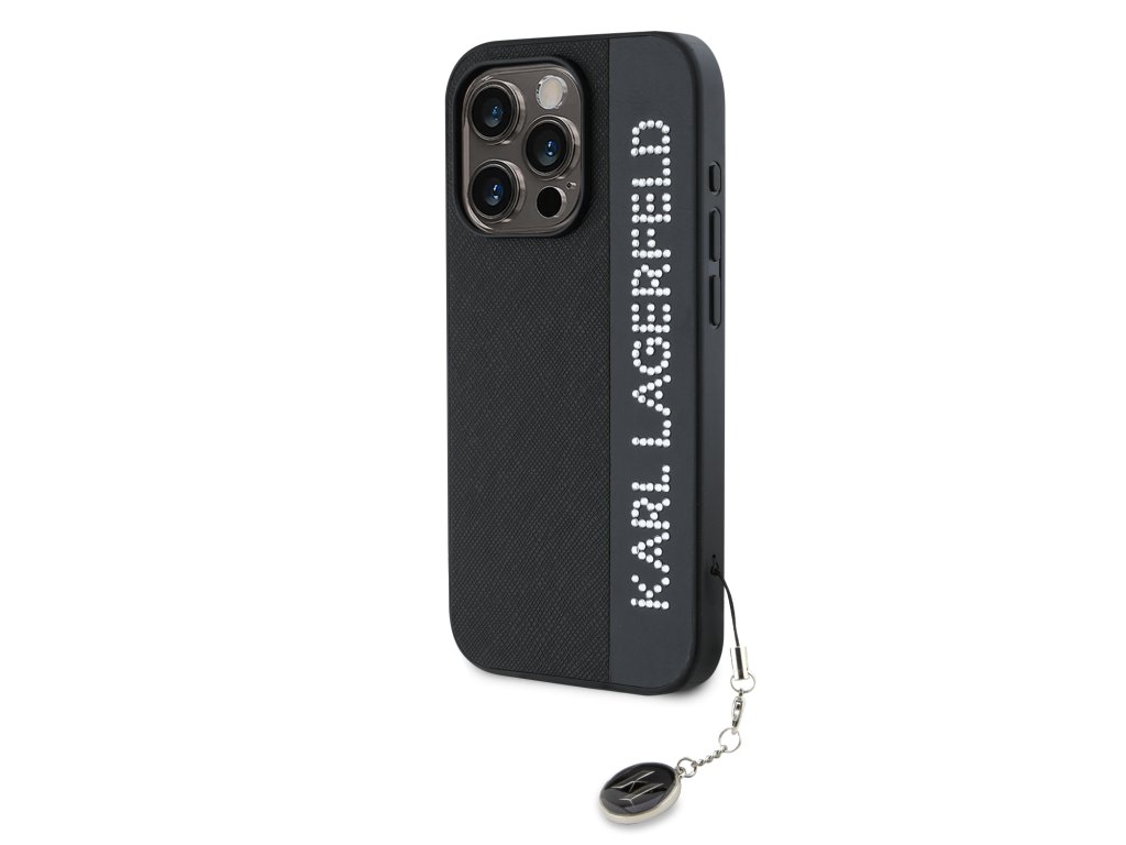 Karl Lagerfeld PU Saffiano Rhinestone Charm Zadní Kryt pro iPhone 15 Pro Max Black