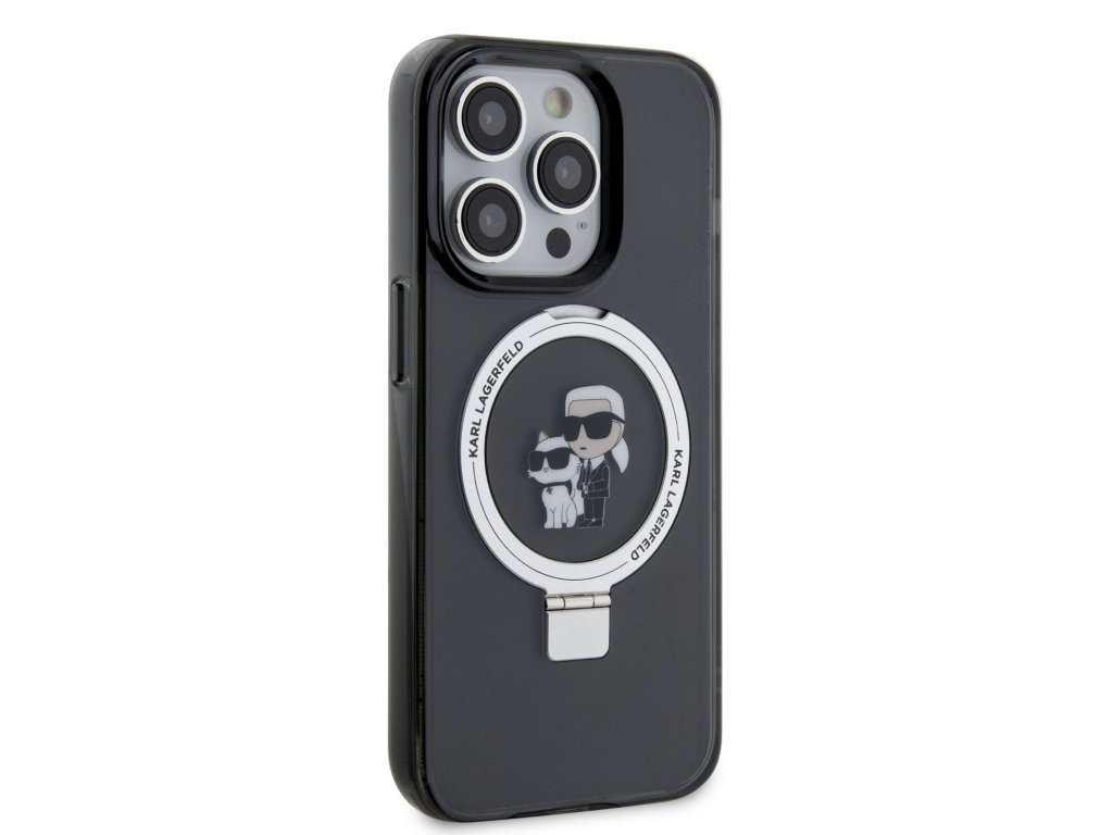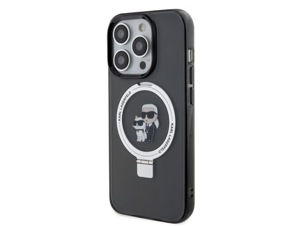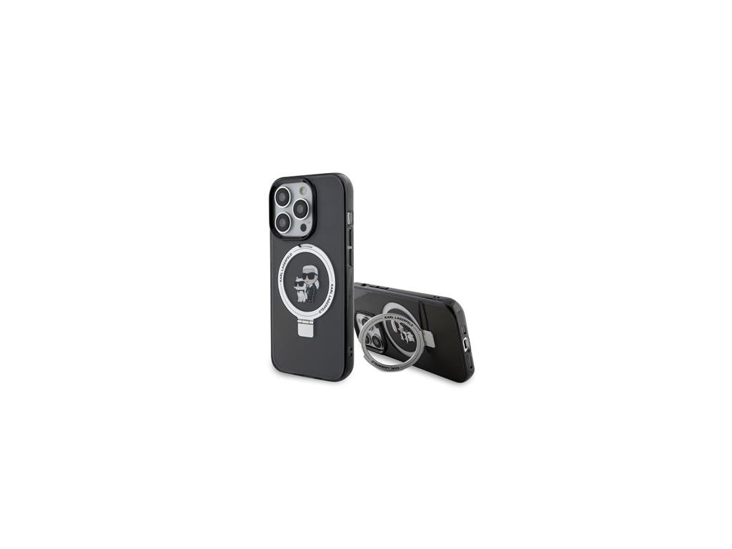 Karl Lagerfeld Ringstand Karl and Choupette MagSafe Zadní Kryt pro iPhone 15 Pro Max Black
