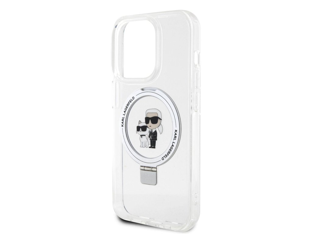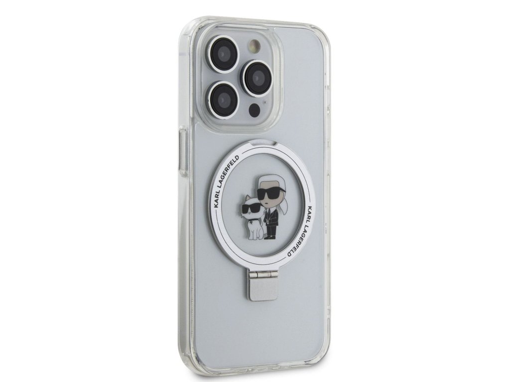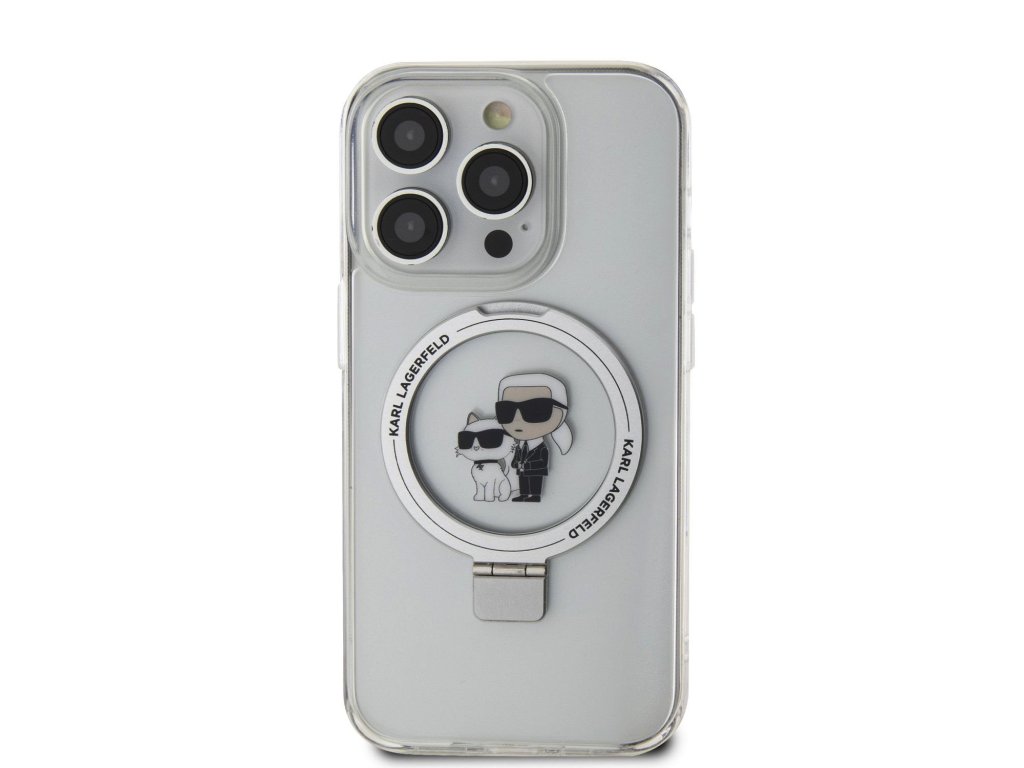 Karl Lagerfeld Ringstand Karl and Choupette MagSafe Zadní Kryt pro iPhone 15 Pro Max White