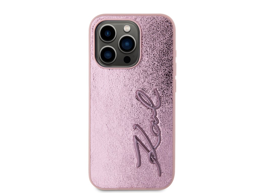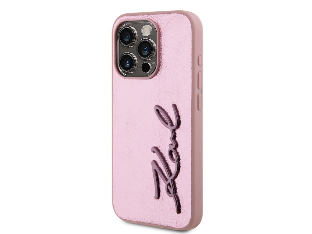 Karl Lagerfeld Wrinkled PU Signature Logo Zadní Kryt pro iPhone 15 Pro Max Pink
