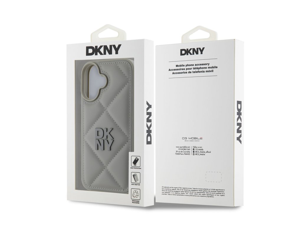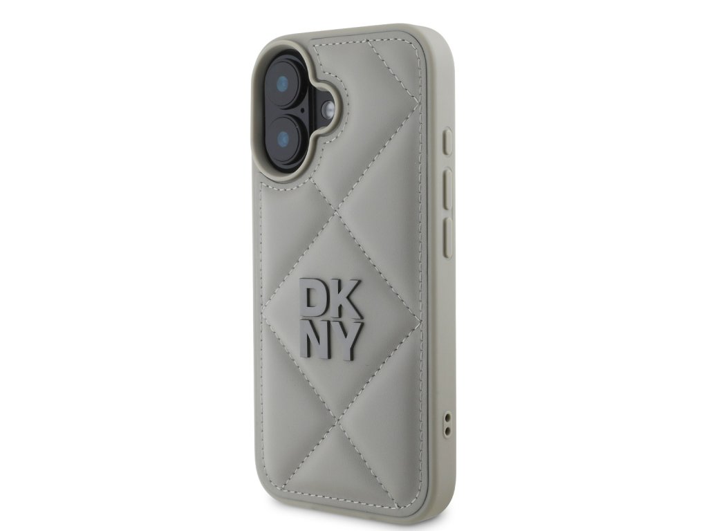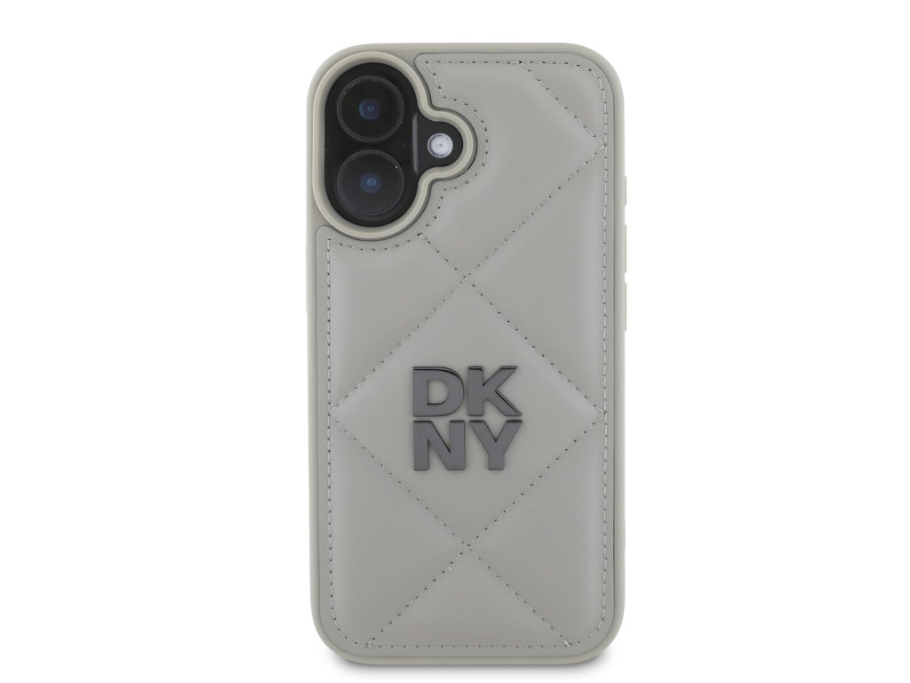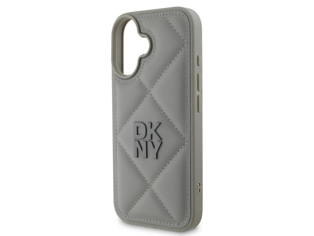 DKNY PU Leather Quilted Stack Logo Zadní Kryt pro iPhone 16 Plus Grey