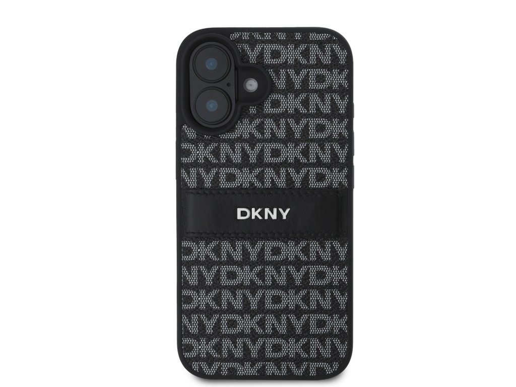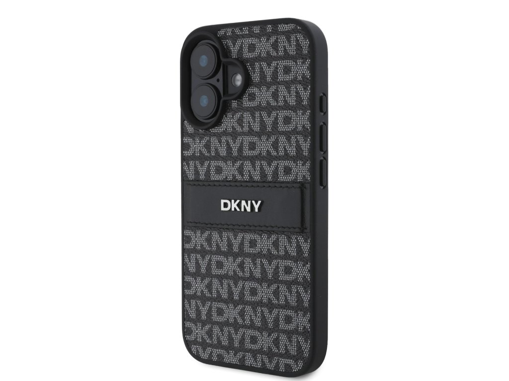 DKNY PU Leather Repeat Pattern Tonal Stripe Zadní Kryt pro iPhone 16 Plus Black