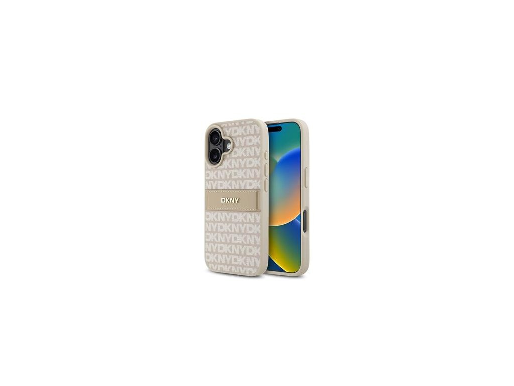 DKNY PU Leather Repeat Pattern Tonal Stripe Zadní Kryt pro iPhone 16 Plus Pink