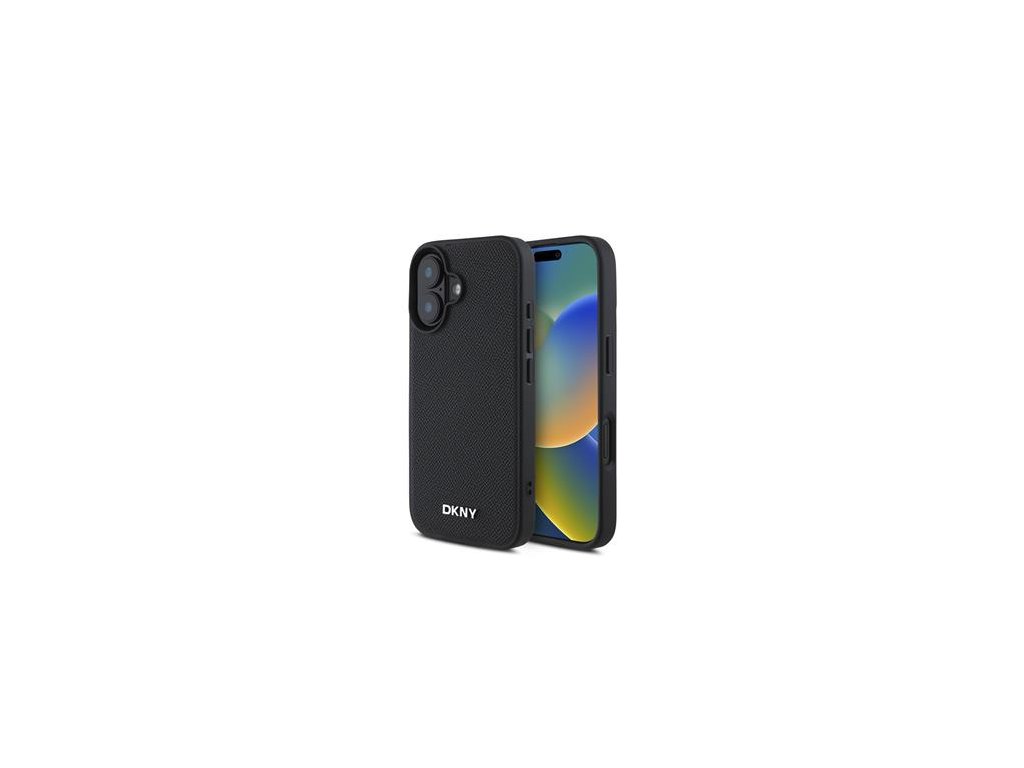 DKNY PU Leather Silver Metal Logo Magsafe Zadní Kryt pro iPhone 16 Plus Black