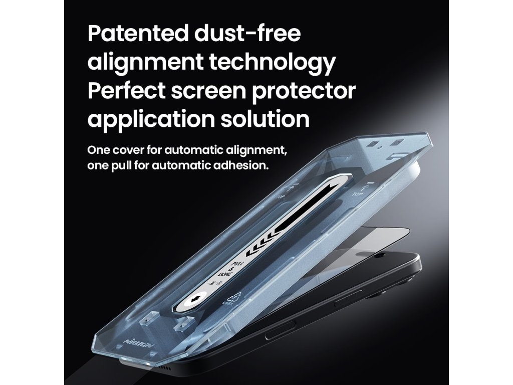 Díky němu můžete snadno nainstalovat tvrzené sklo na displej bez rizika špatného umístění nebo tvorby vzduchových bublin.