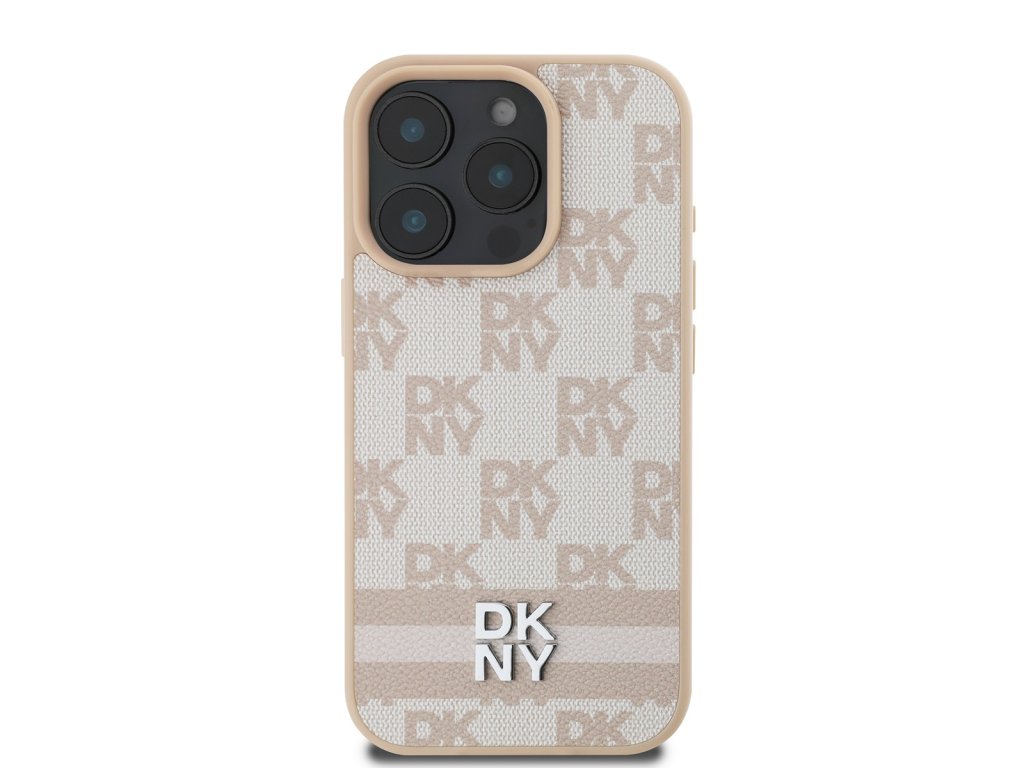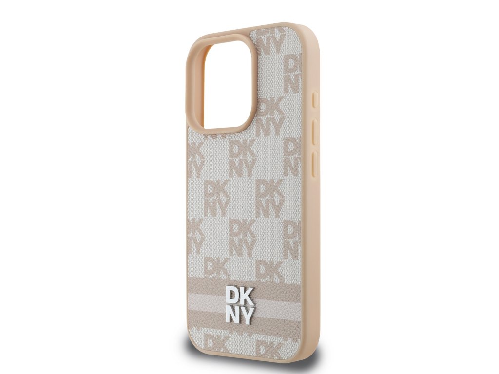 DKNY PU Leather Checkered Pattern and Stripe Zadní Kryt pro iPhone 16 Pro Max Pink