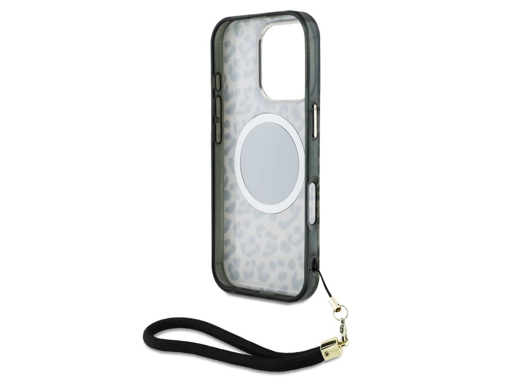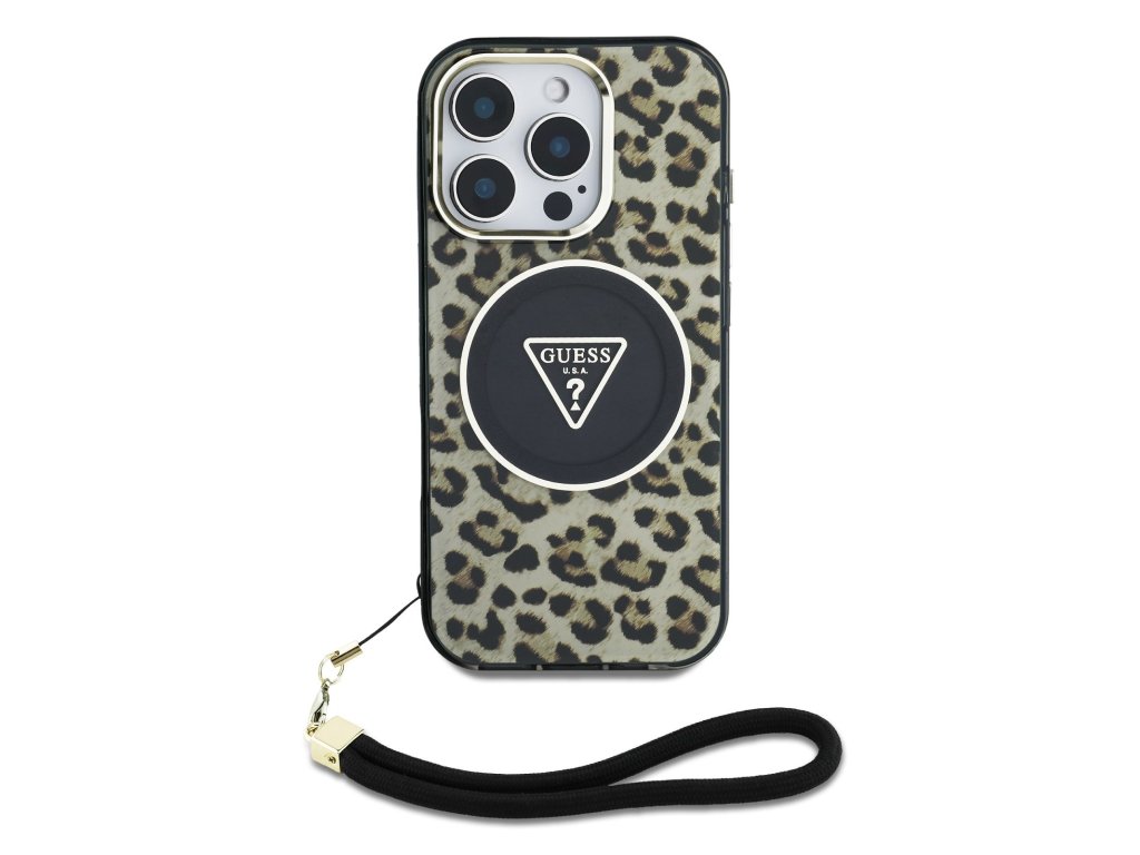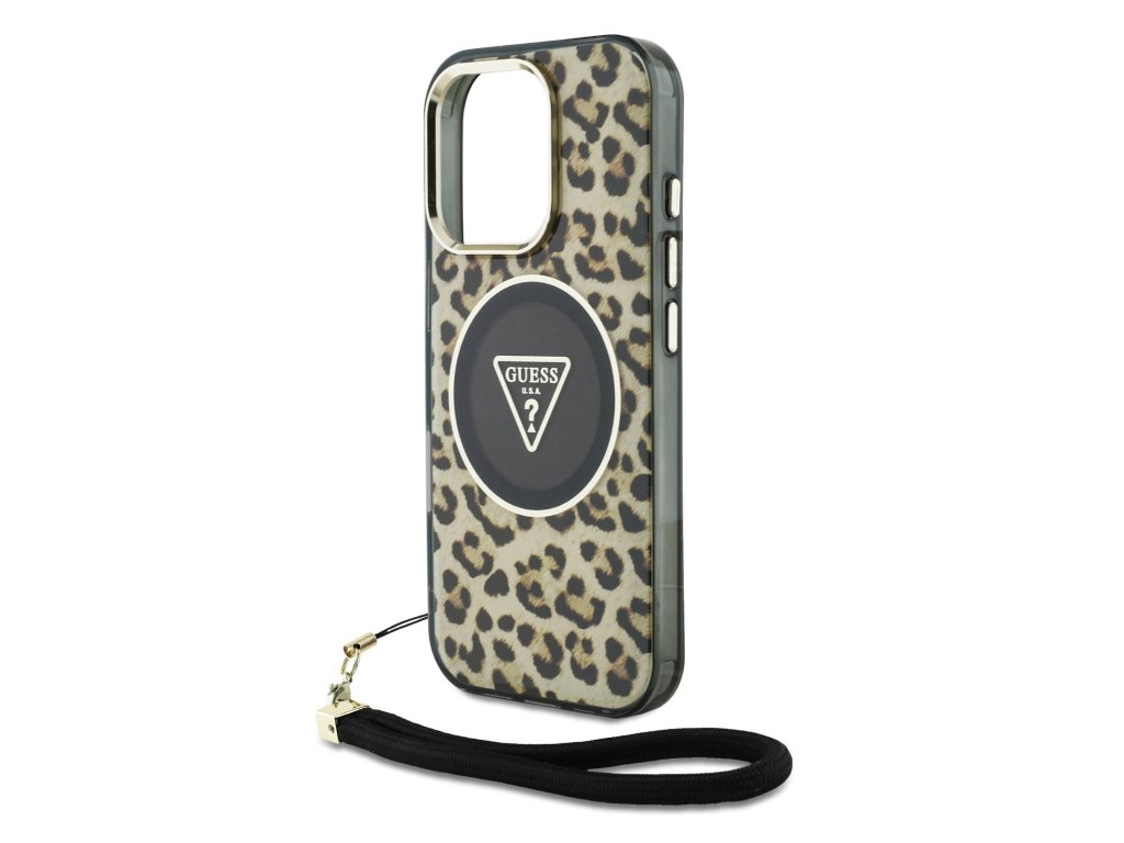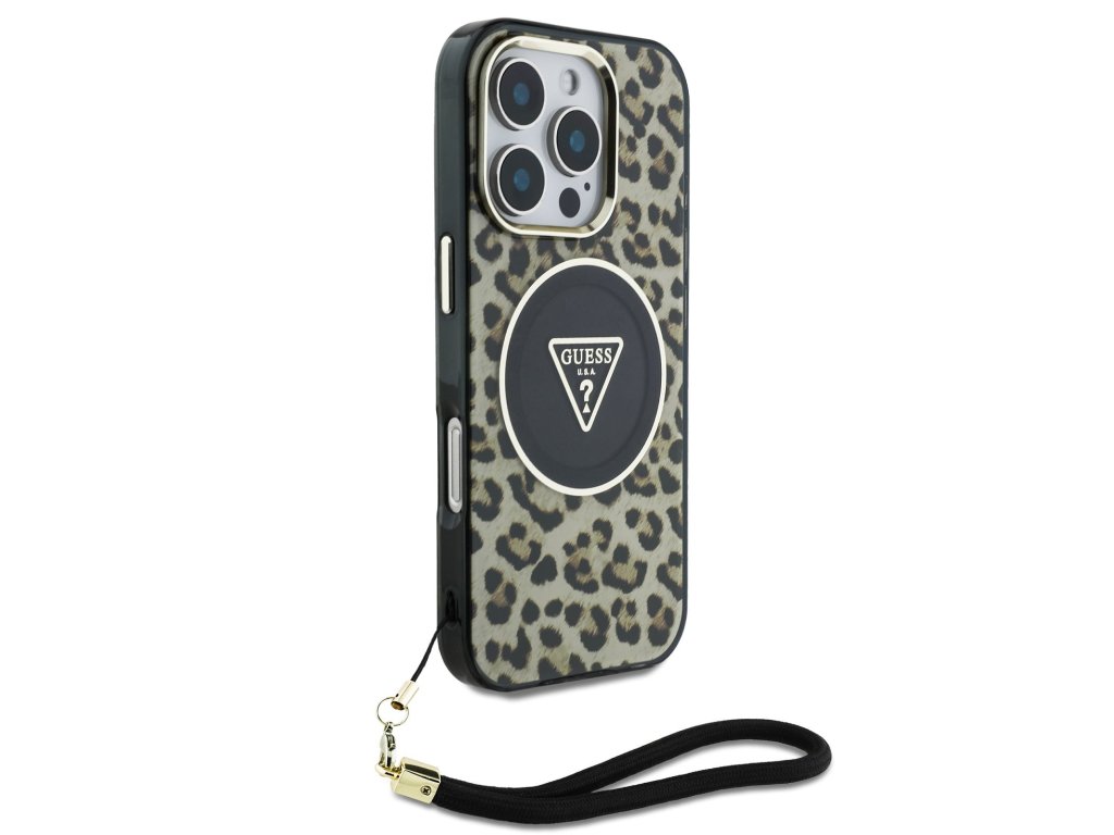Guess IML Leopard Triangle Logo Strap MagSafe Zadní Kryt pro iPhone 16 Pro Max Brown