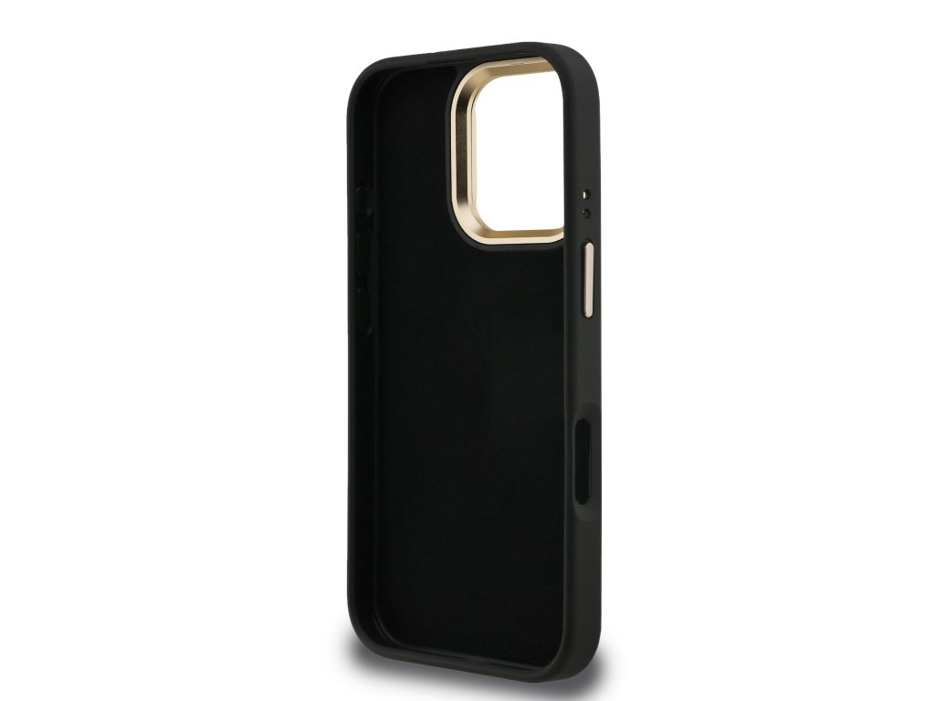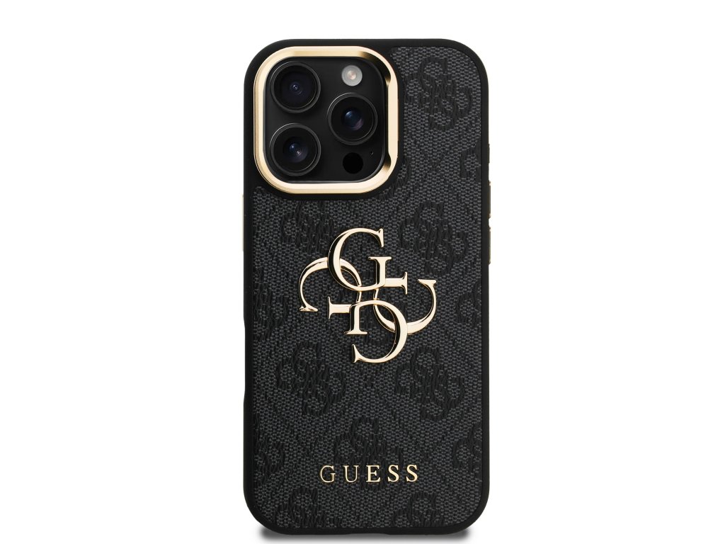 Guess PU 4G Metal Logo Stand Camera Frame Zadní Kryt pro iPhone 16 Pro Max Black