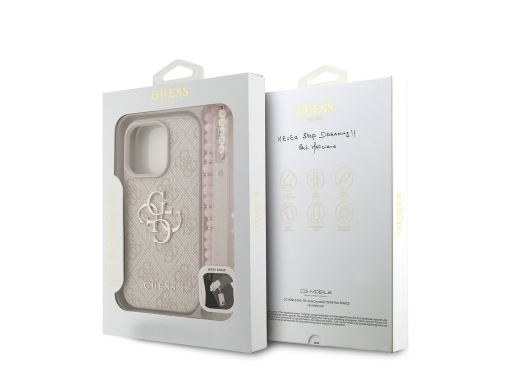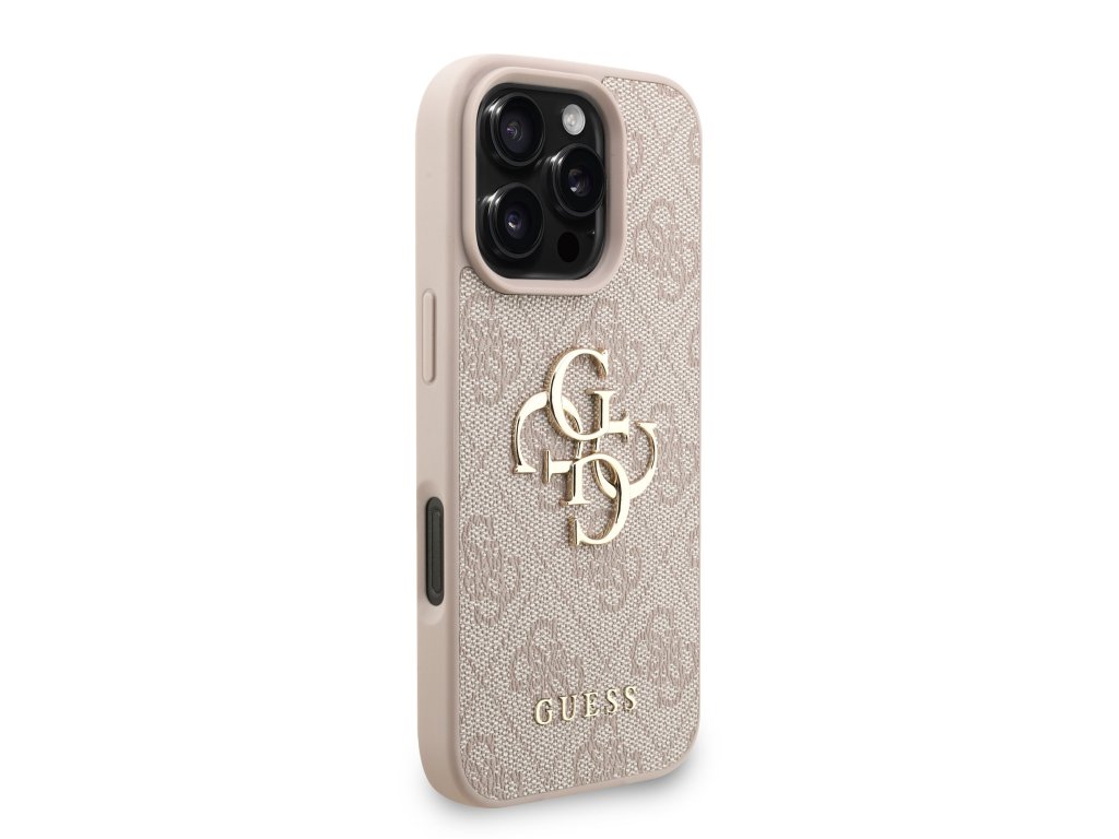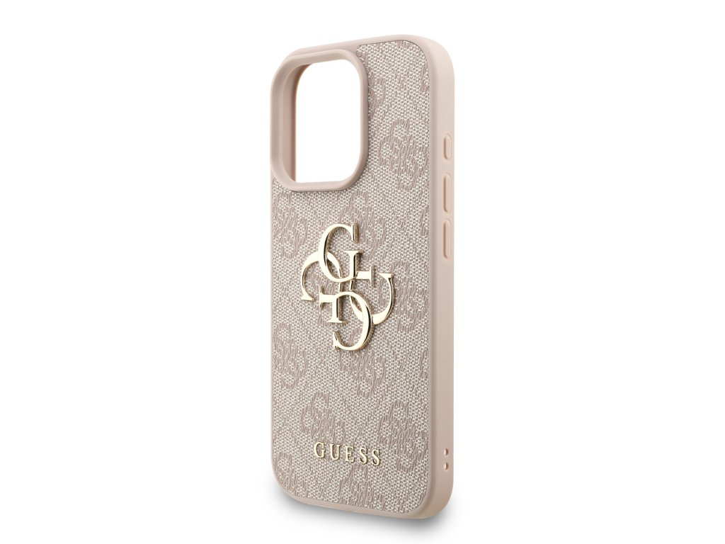 Guess PU 4G Metal Logo Strap Zadní Kryt pro iPhone 16 Pro Max Pink