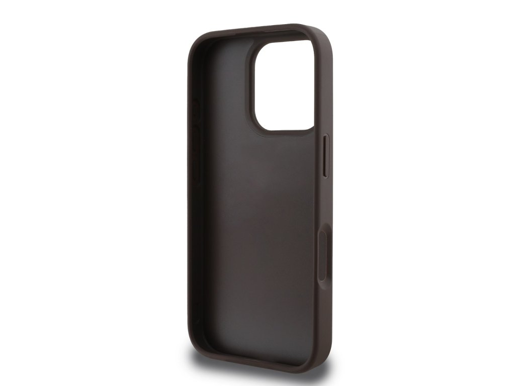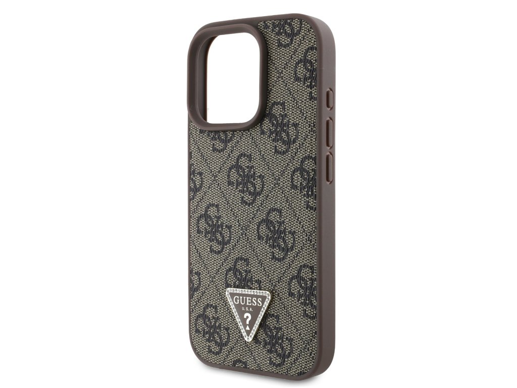 Guess PU 4G Strass Triangle Metal Logo Zadní Kryt pro iPhone 16 Pro Max Brown