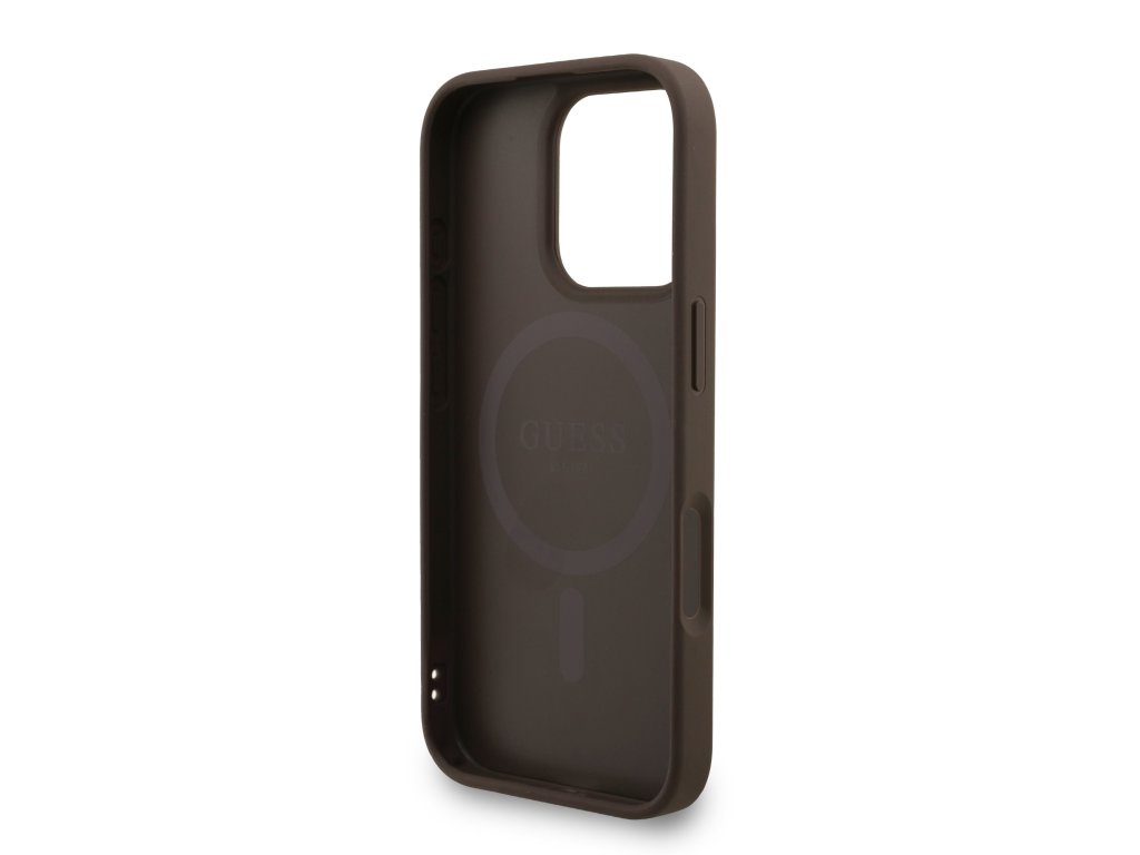 Guess PU Leather 4G Colored Ring Strap MagSafe Zadní Kryt pro iPhone 16 Pro Max Brown