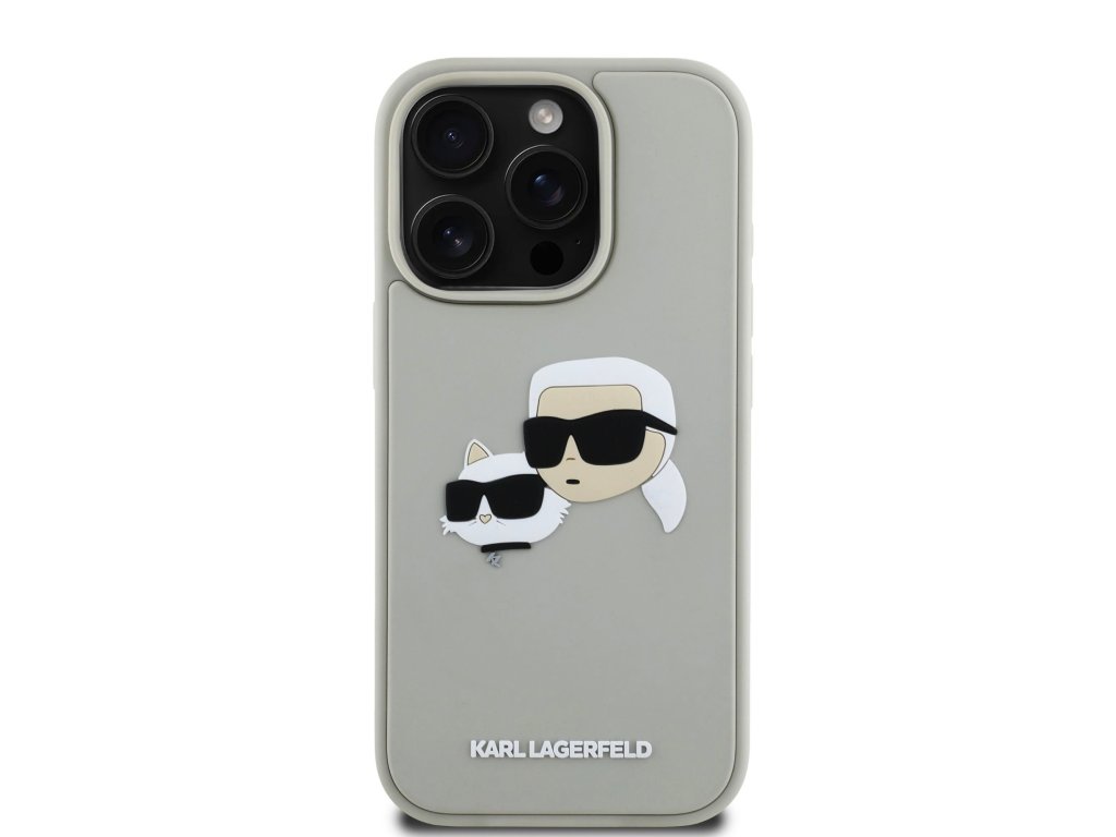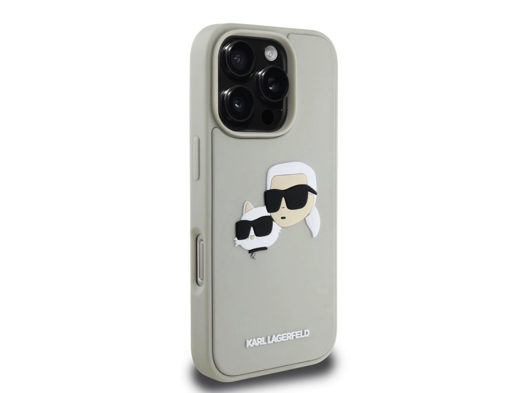 Karl Lagerfeld 3D Rubber Double Heads Zadní Kryt pro iPhone 16 Pro Max Beige
