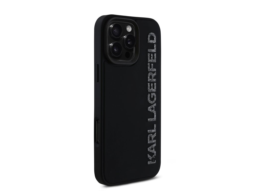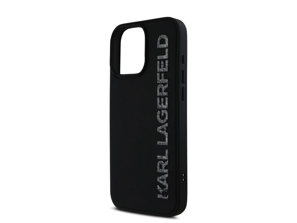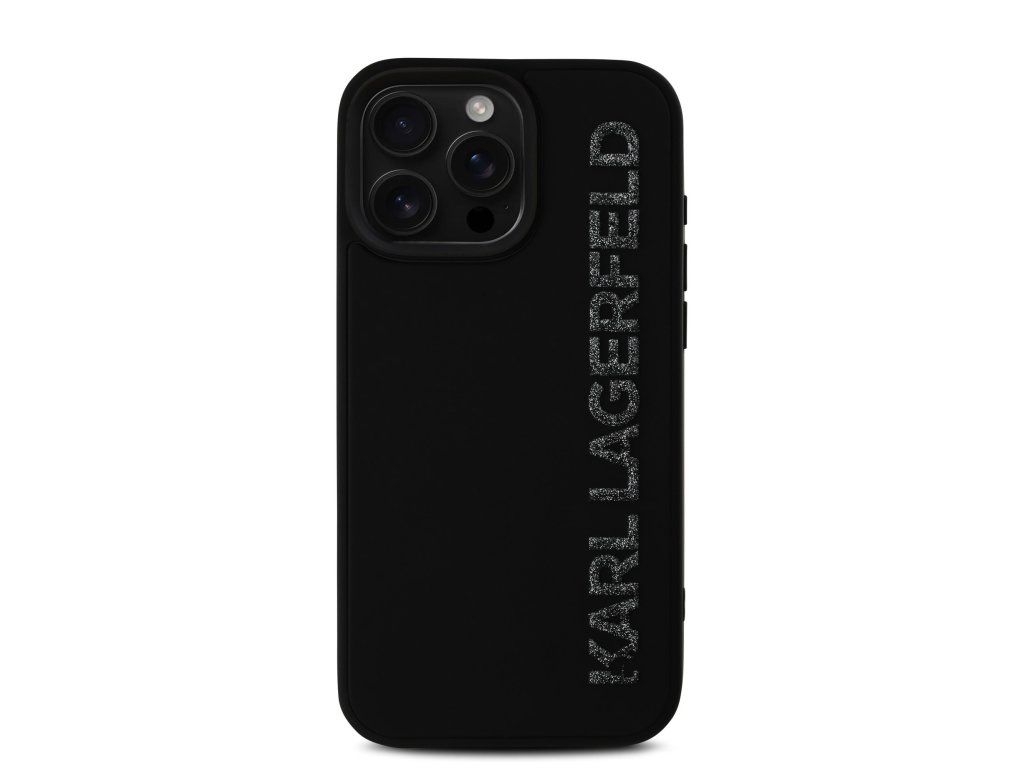 Karl Lagerfeld 3D Rubber Glitter Logo Zadní Kryt pro iPhone 16 Pro Max Black