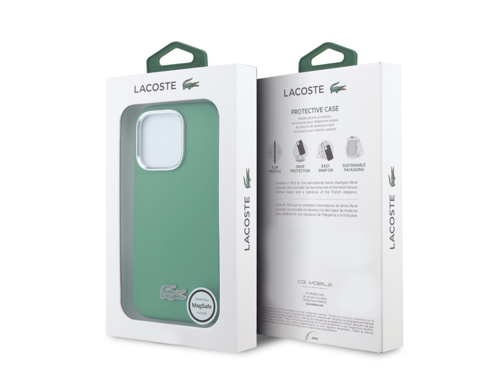 Lacoste Iconic Petit Pique MagSafe zadní kryt je dokonalý doplněk pro váš telefon i váš outfit, který kombinuje funkčnost a styl v jednom.Je vyrobený z lehké a odolného PVC materiálu s jemnou texturou a nabízí skvělou ochranu a pohodlí při používání. Vnitřní výstelka z jemného mikrovlákna zajišťuje, že váš telefon bude chráněn před poškrábáním a drobnými poškozeními.
