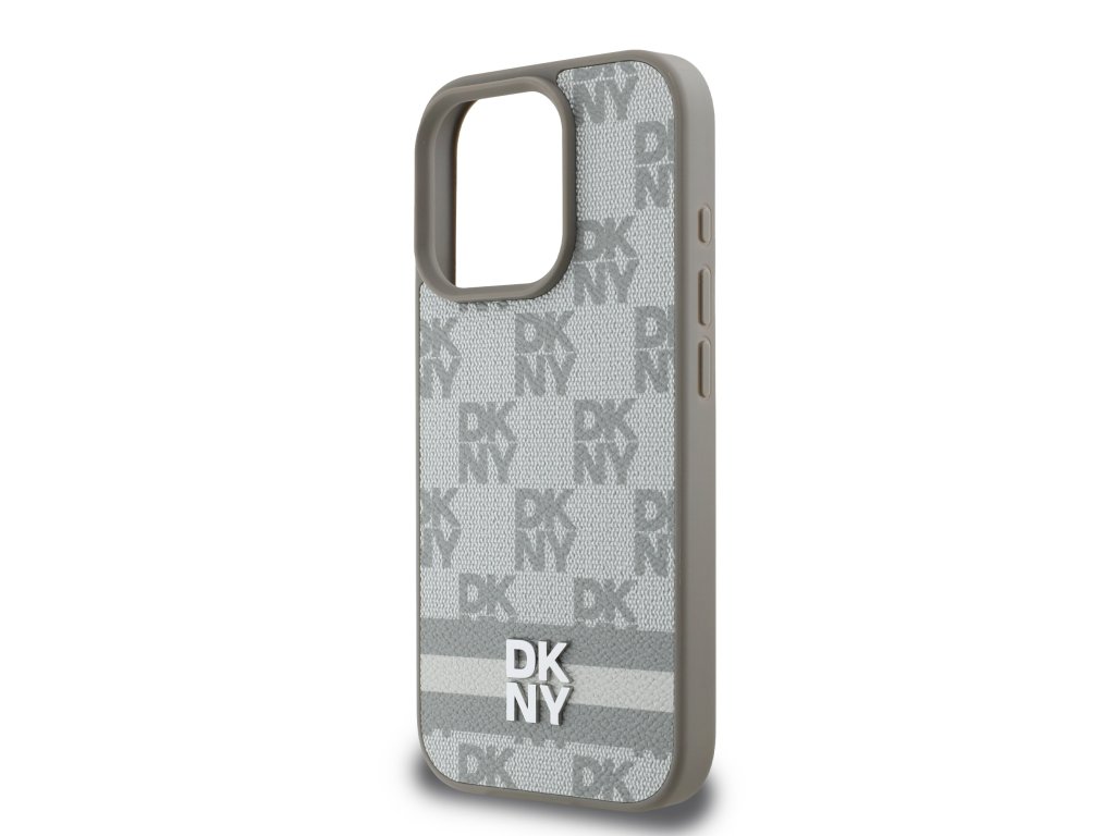 DKNY PU Leather Checkered Pattern and Stripe Zadní Kryt pro iPhone 16 Pro Beige
