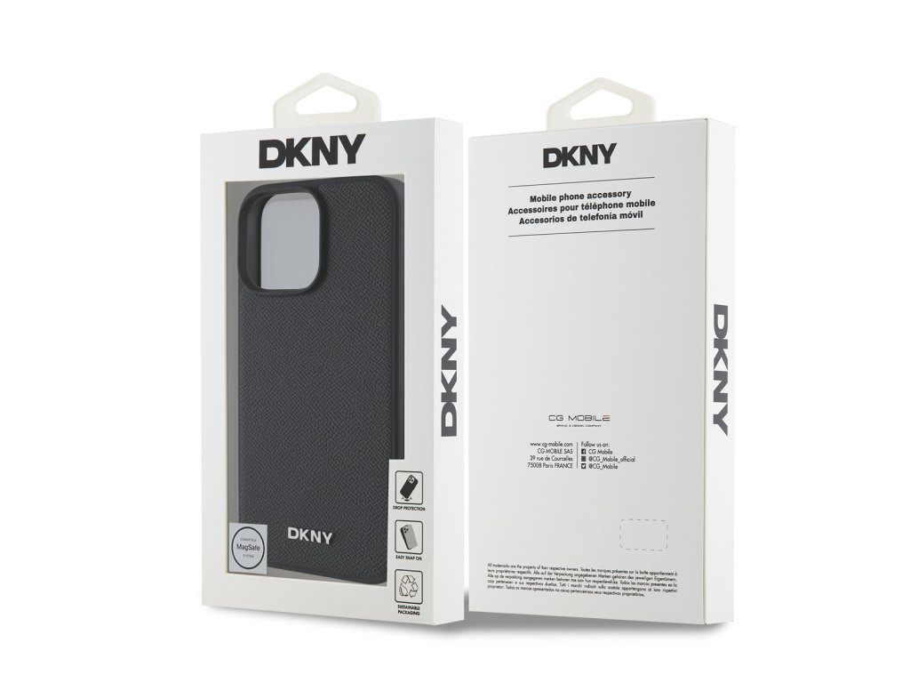 DKNY PU Leather Silver Metal Logo Magsafe prémiový kryt je tu, aby tvůj telefon nejenom chránil, ale také zaujal svým šarmem a kvalitou.Kryt je vyrobený z lehkého a odolného polyuretanu (PU) s povrchovou úpravou z PU kůže a nabízí tak nejen skvělou ochranu telefonu, ale také pohodlí při používání.
