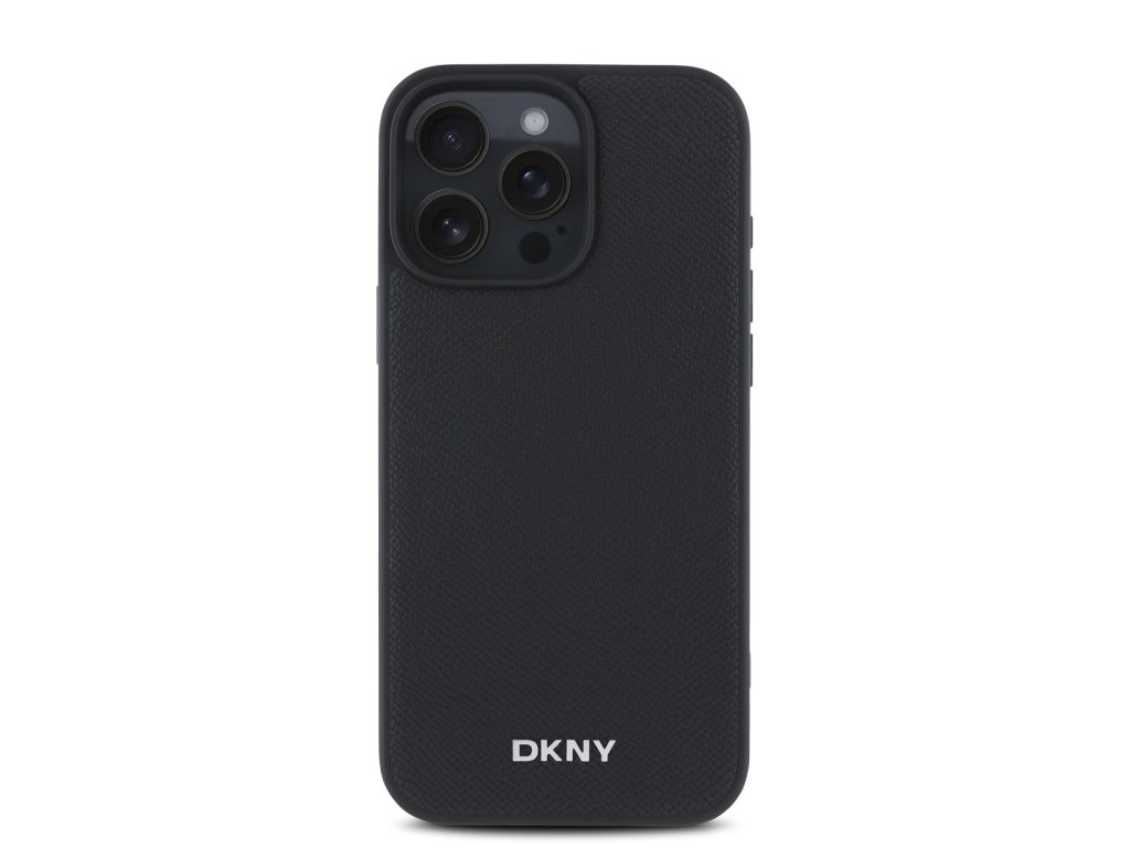 DKNY PU Leather Silver Metal Logo Magsafe Zadní Kryt pro iPhone 16 Pro Black
