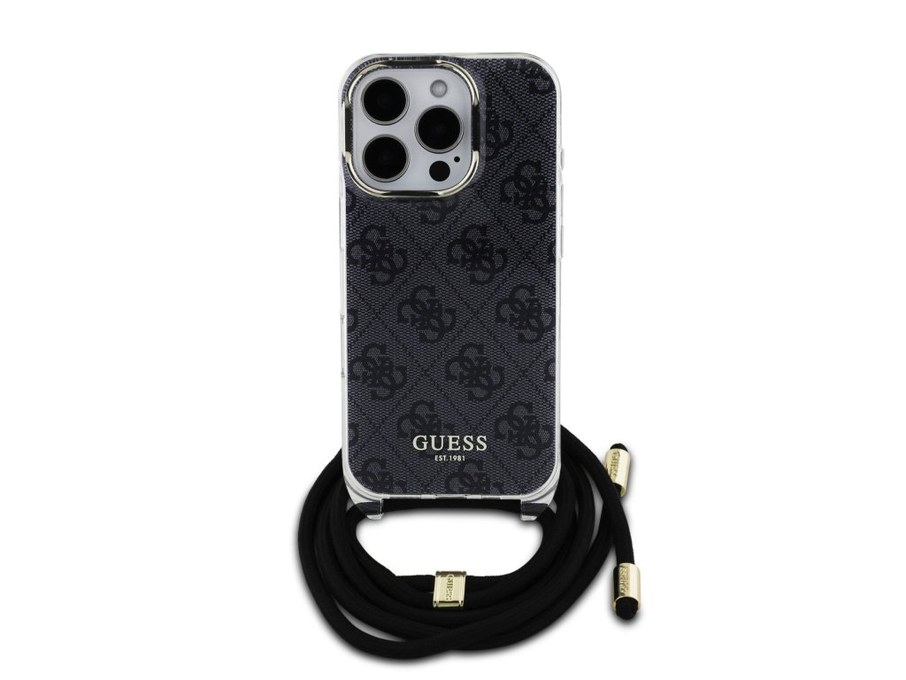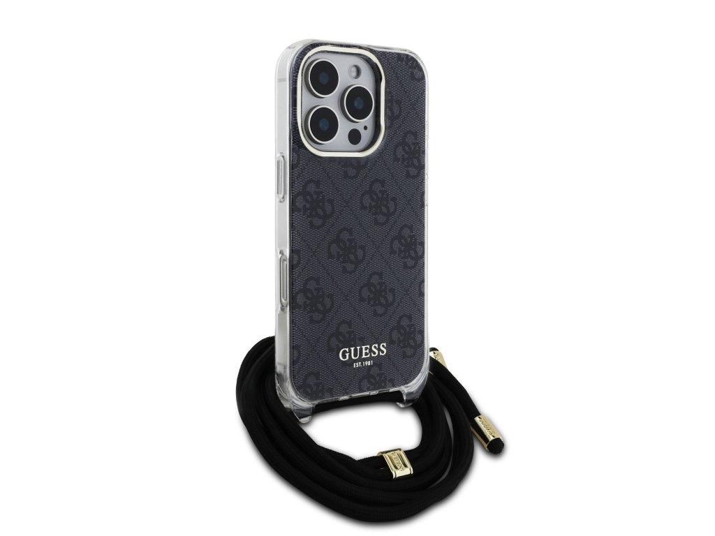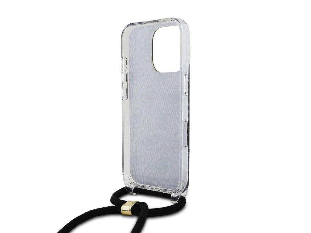 Guess IML 4G Printed Crossbody Popruh Zadní Kryt pro iPhone 16 Pro Black