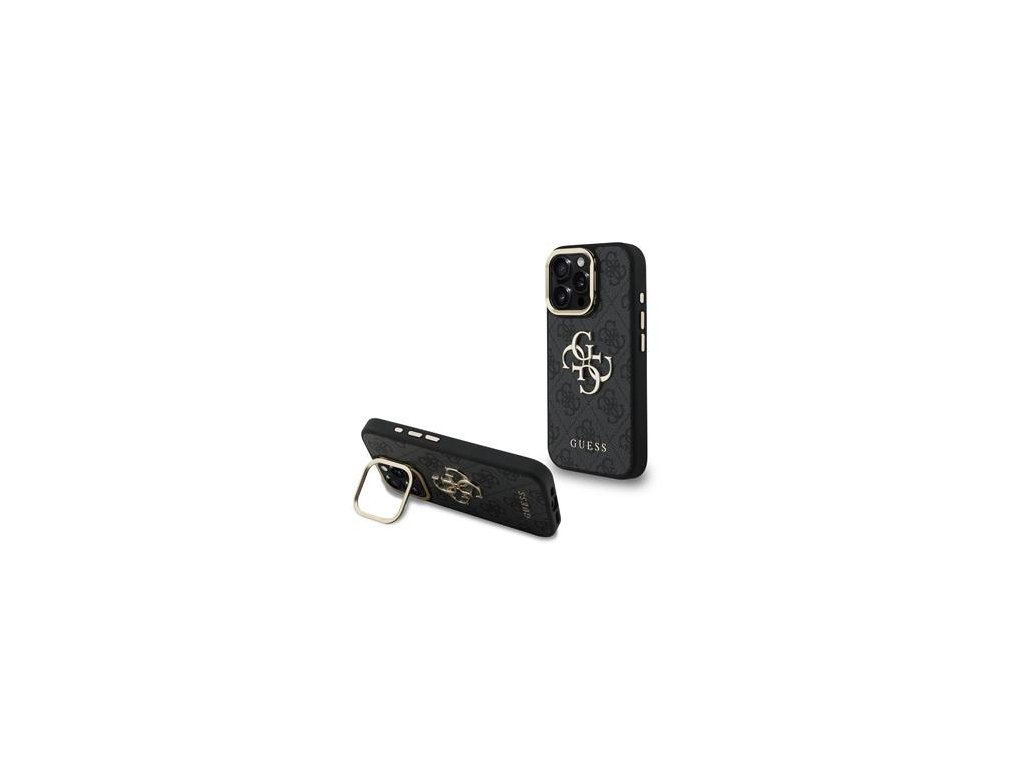 Guess PU 4G Metal Logo Stand Camera Frame Zadní Kryt pro iPhone 16 Pro Black