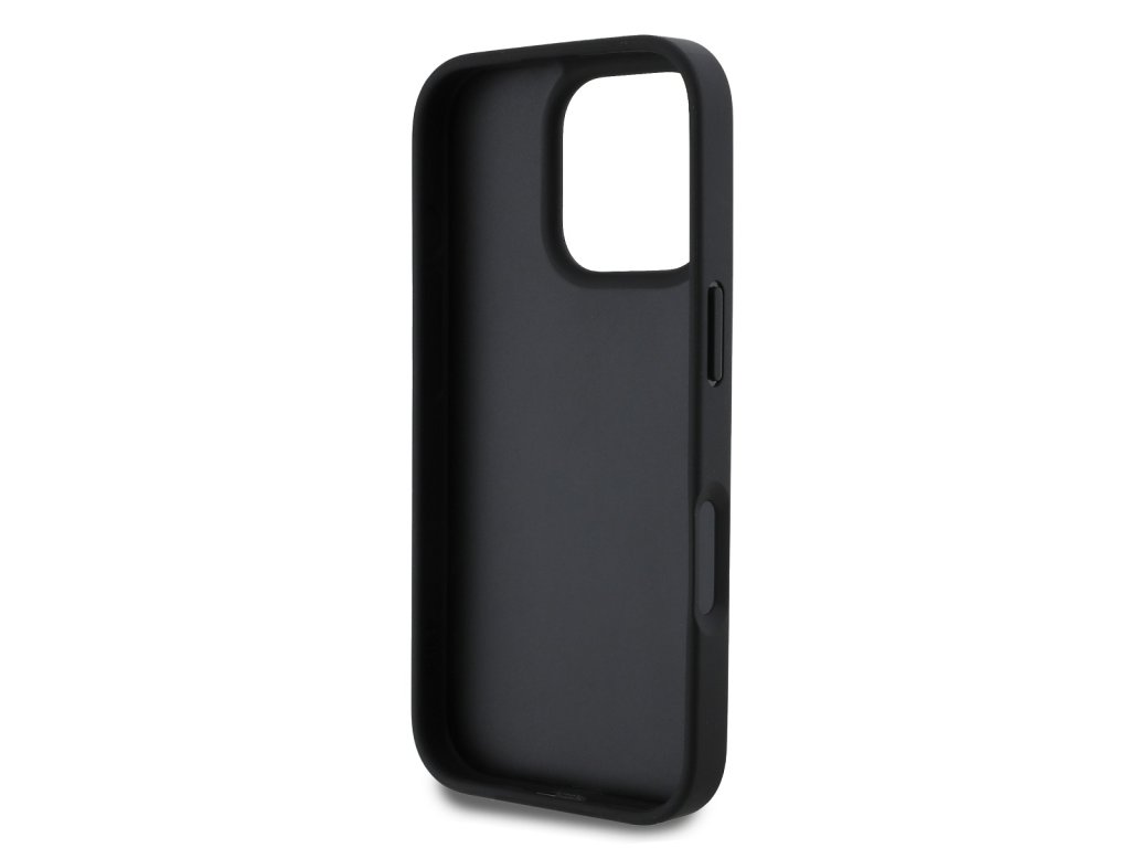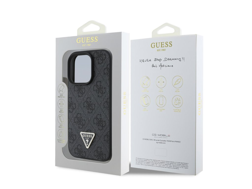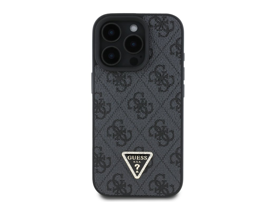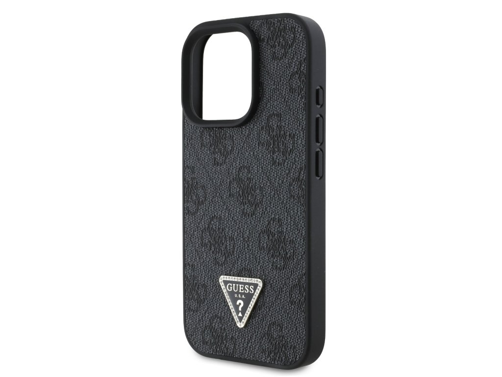 Guess PU 4G Strass Triangle Metal Logo Zadní Kryt pro iPhone 16 Pro Black