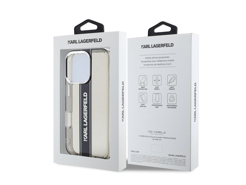 Karl Lagerfeld IML Stripe Logo Zadní Kryt pro iPhone 16 Pro Black