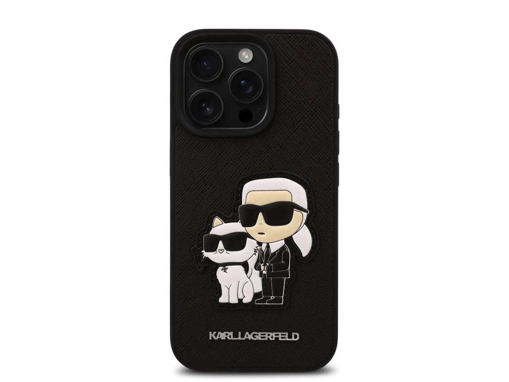 Karl Lagerfeld PU Saffiano Karl and Choupette Zadní Kryt pro iPhone 16 Pro Black