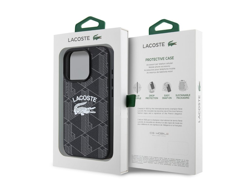 Elegantní a monogram design s ikonickým logem krokodýla a příjemnou texturou dodává krytu nezaměnitelný vzhled.