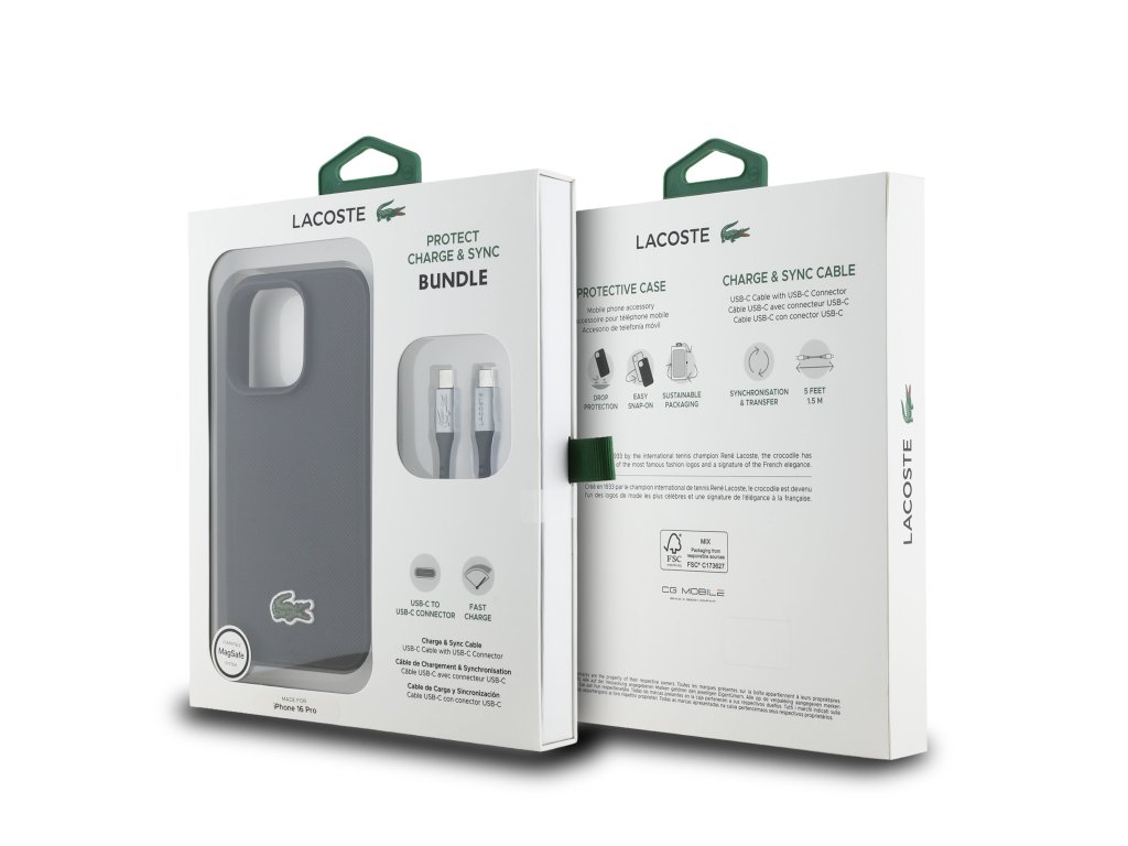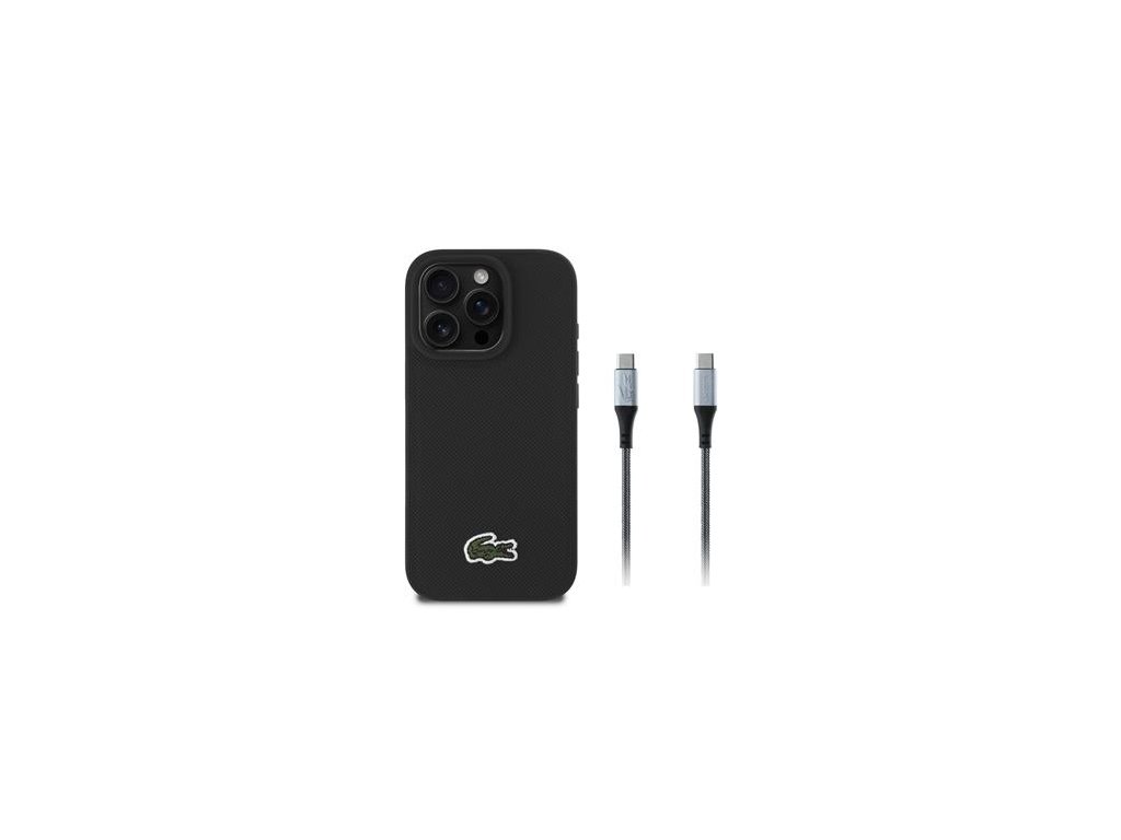 Lacoste Iconic Petit Pique Woven Logo MagSafe Zadní Kryt pro iPhone 16 Pro Black + USB-C/USB-C Datový Kabel