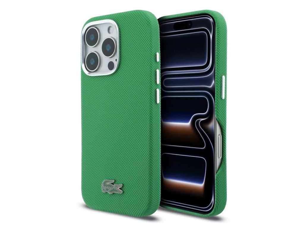 Lacoste PVC Iconic Petit Pique Metal Logo MagSafe Zadní Kryt pro iPhone 16 Pro Estragon Green