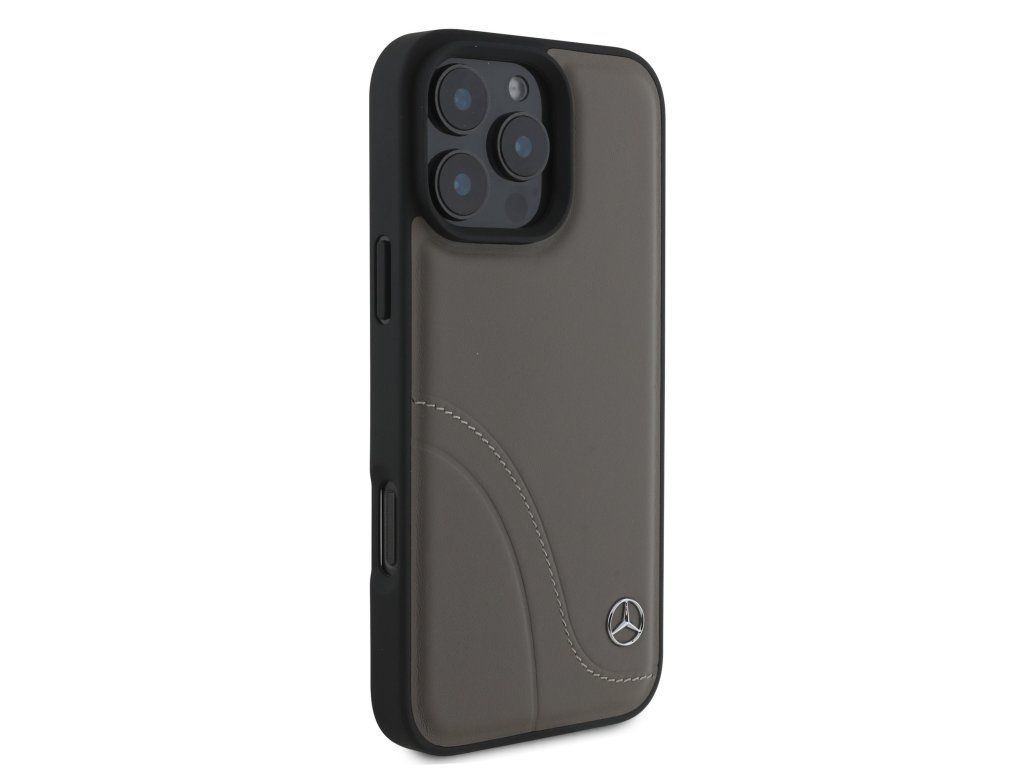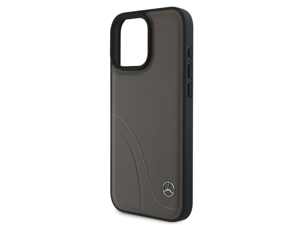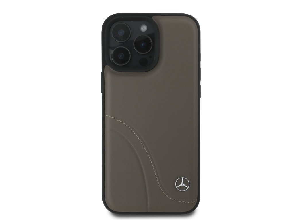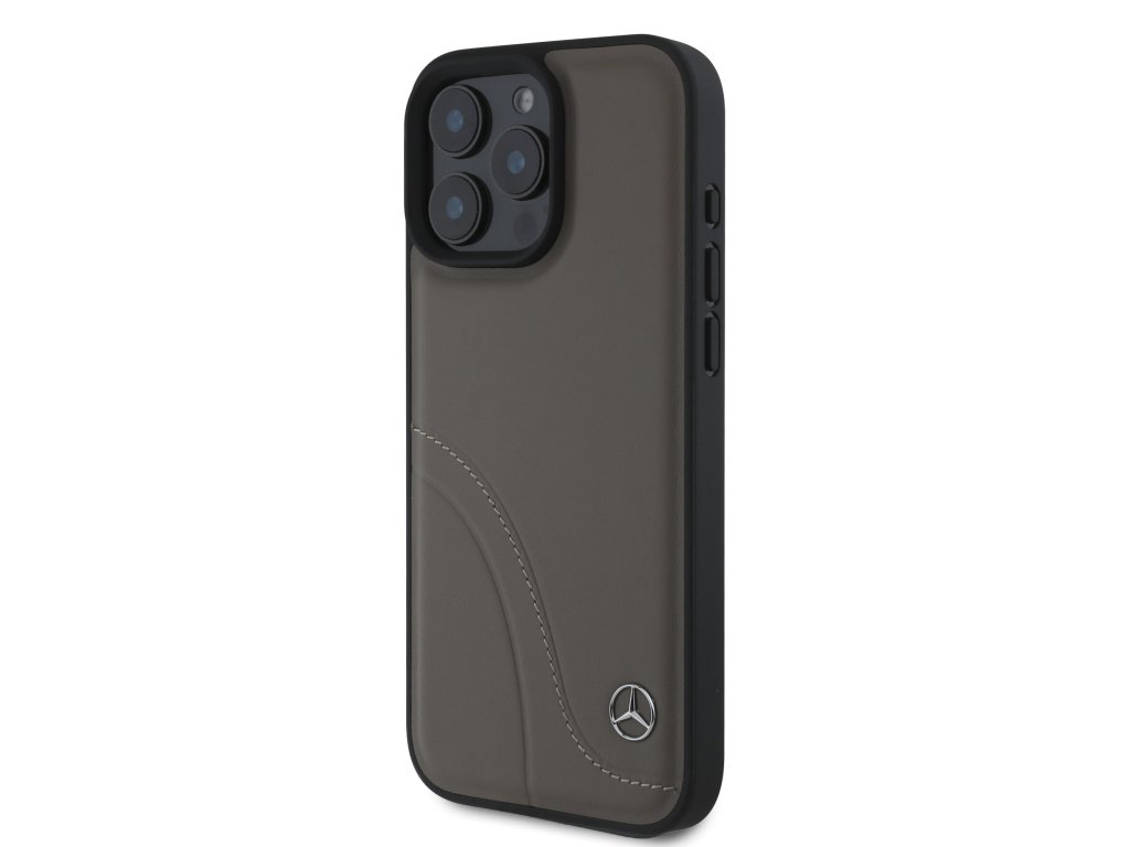 Mercedes Curved Stitches Leather Zadní Kryt pro iPhone 16 Pro Brown