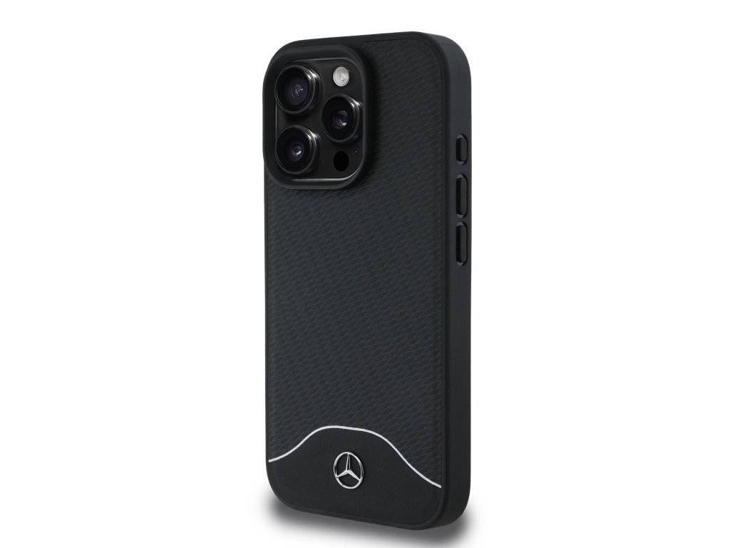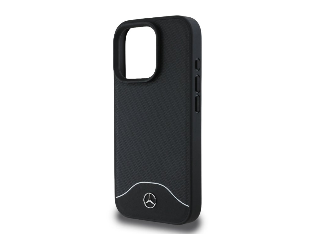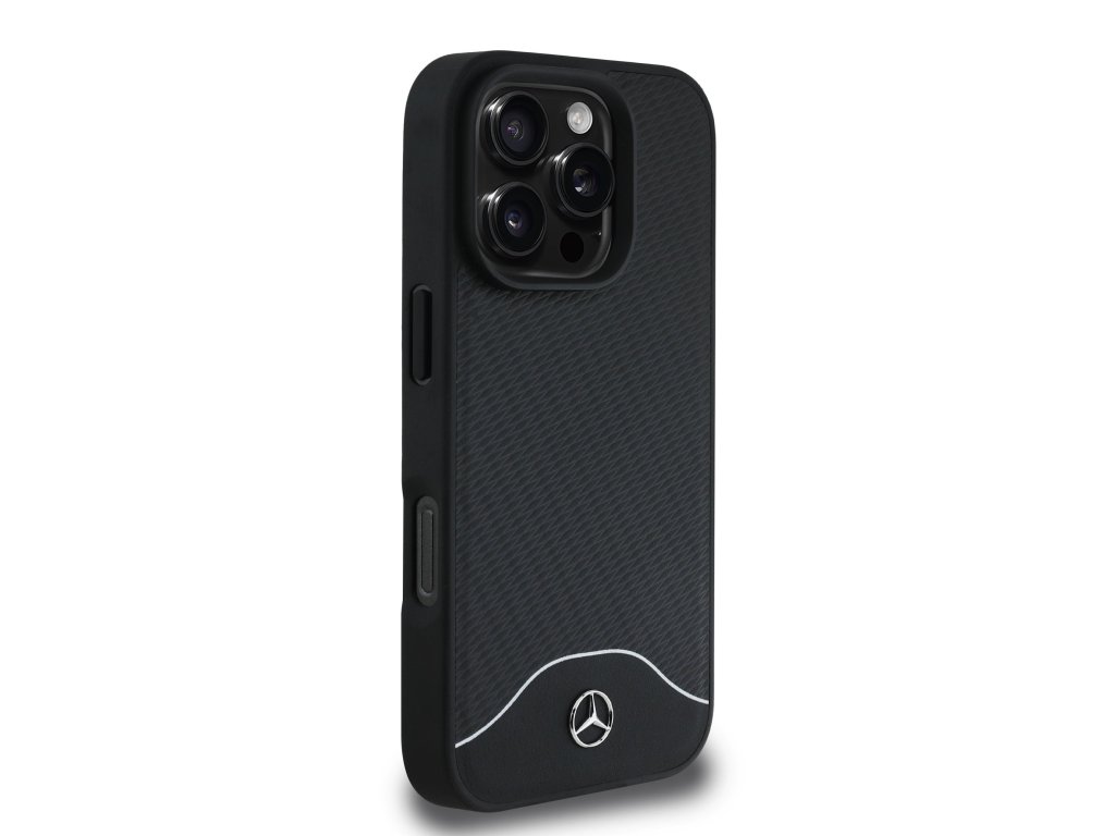 Mercedes Wood Imitation and Smooth Leather MagSafe Zadní Kryt pro iPhone 16 Pro Black