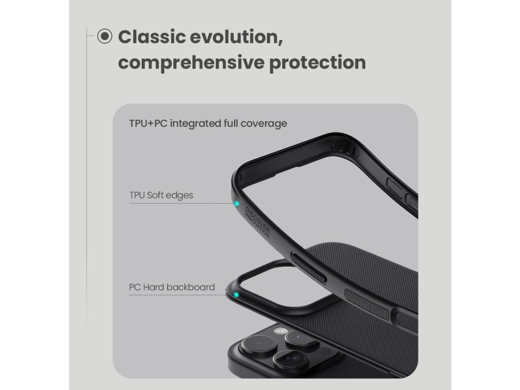 Skládá se z tvrdého a odolného plastu na zadní straně a TPU měkkého plastu na bocích.