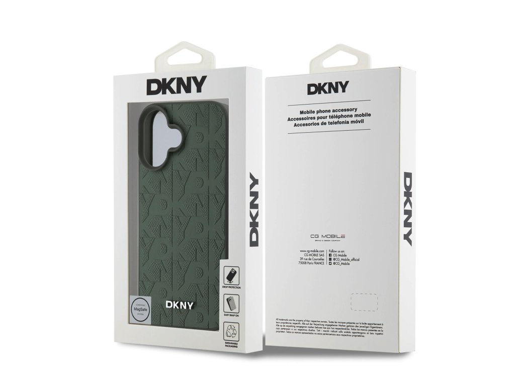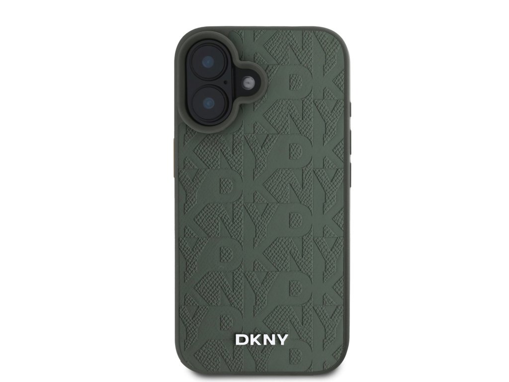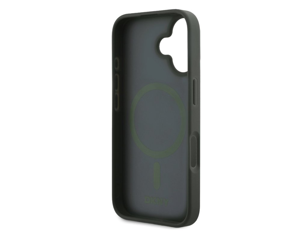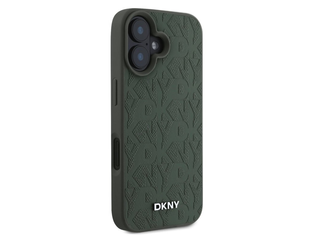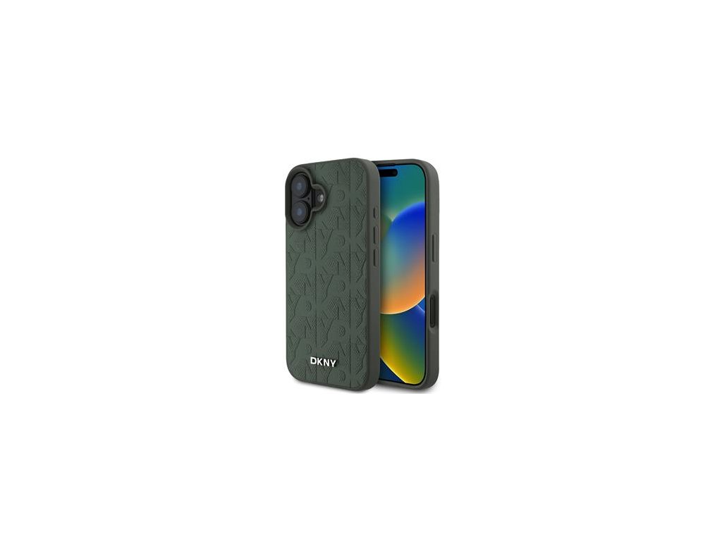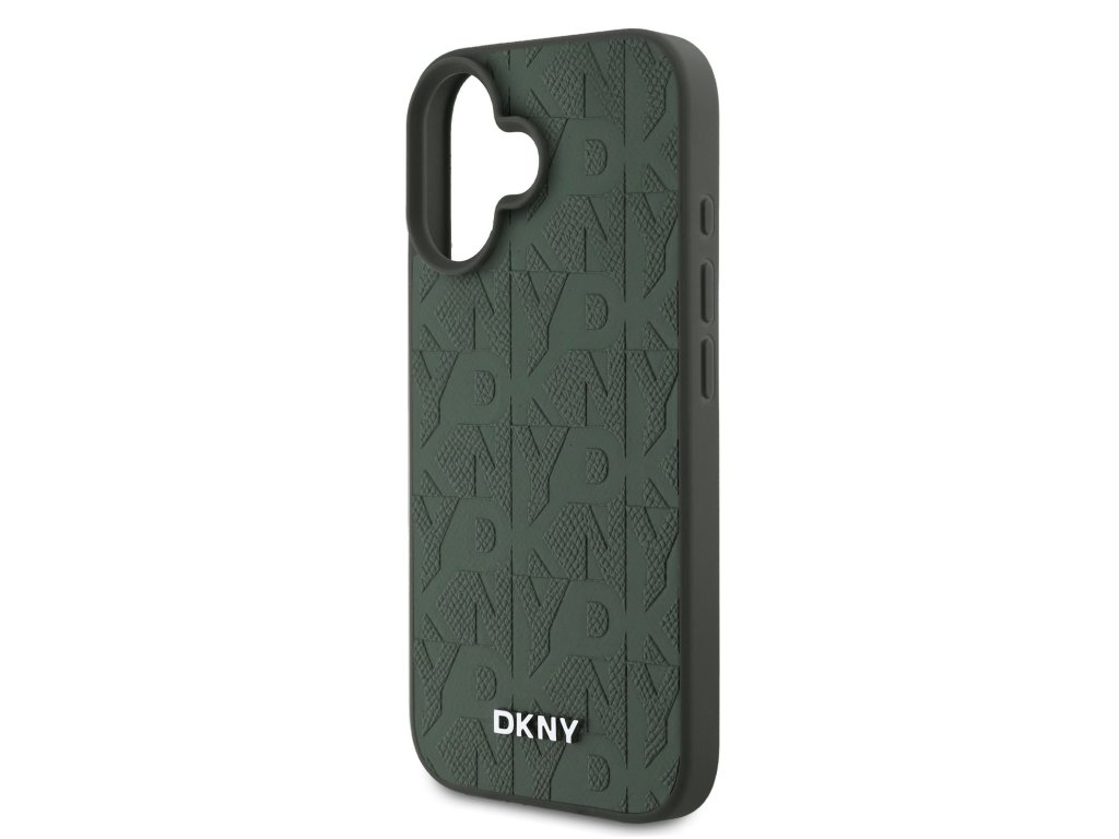 DKNY PU Leather Grid Pattern Magsafe Zadní Kryt pro iPhone 16 Green
