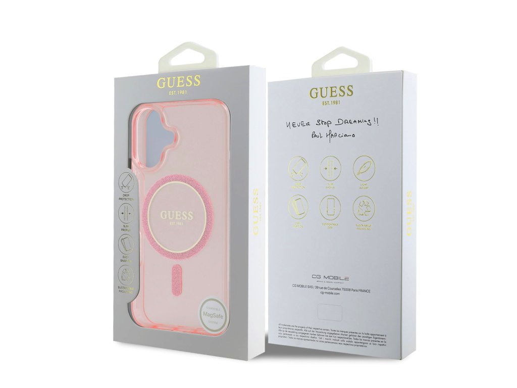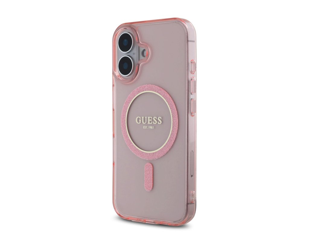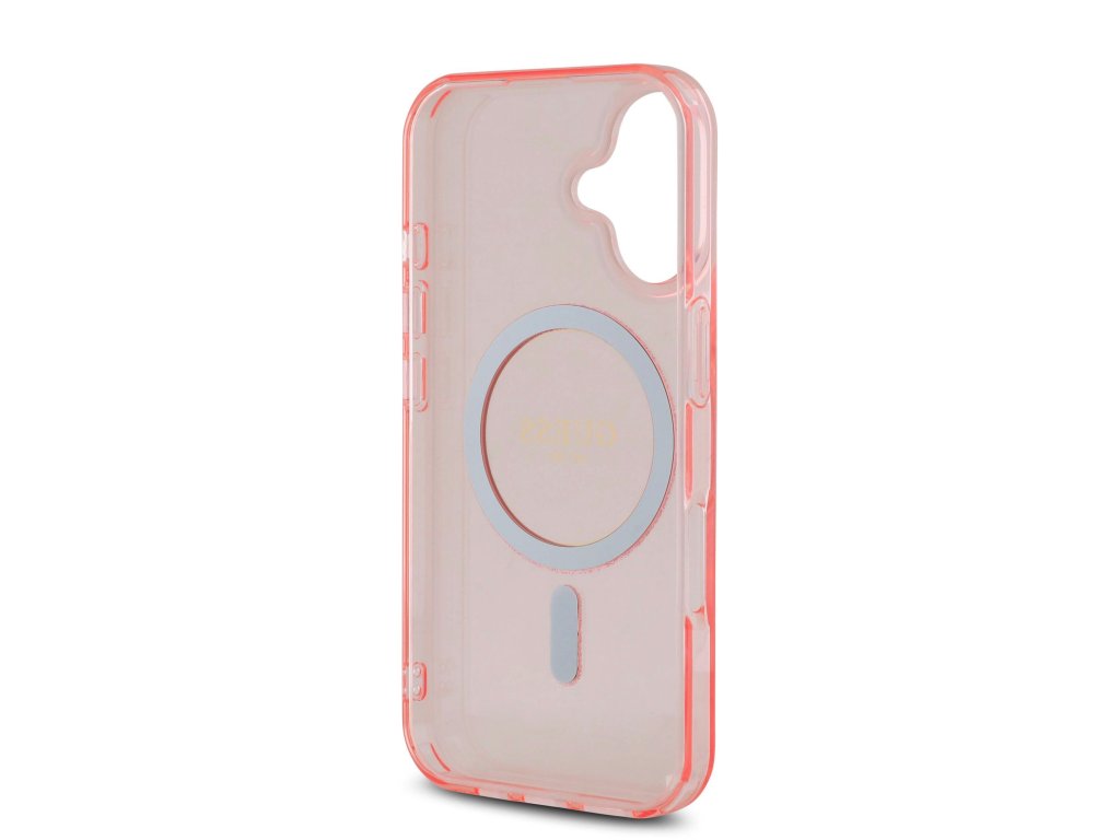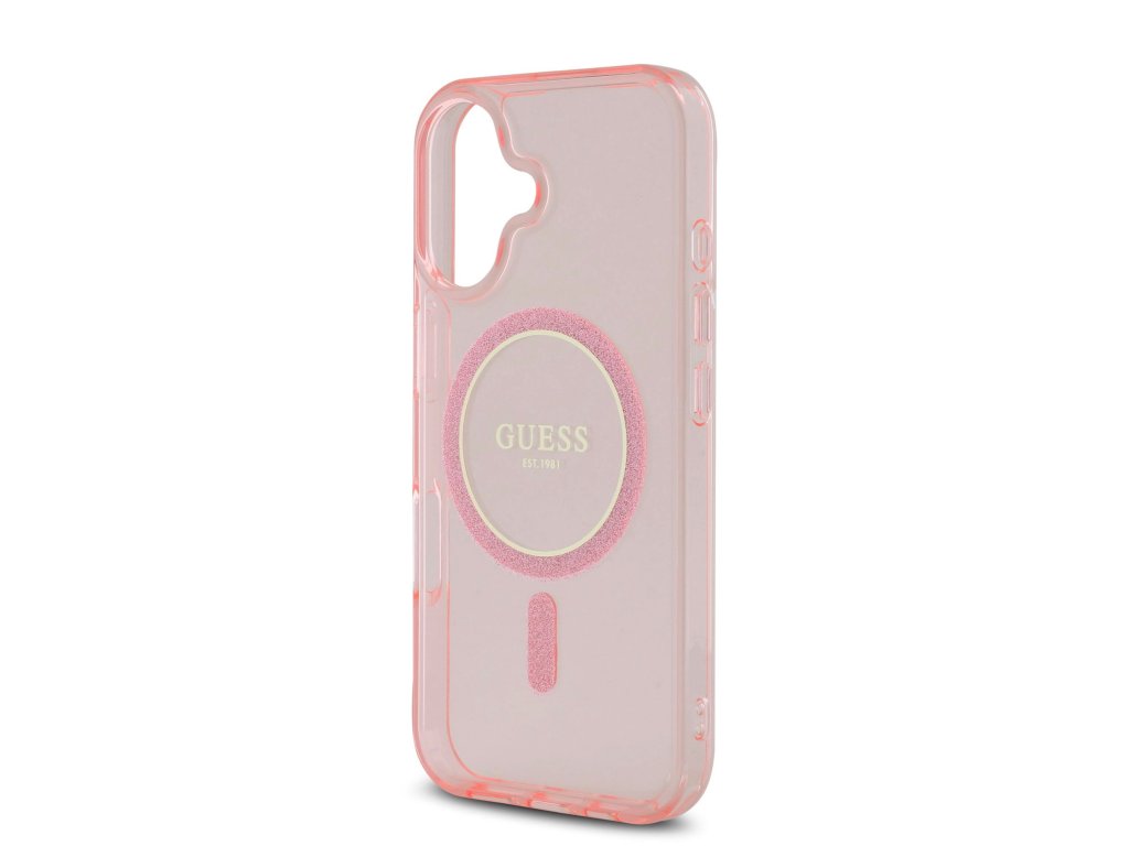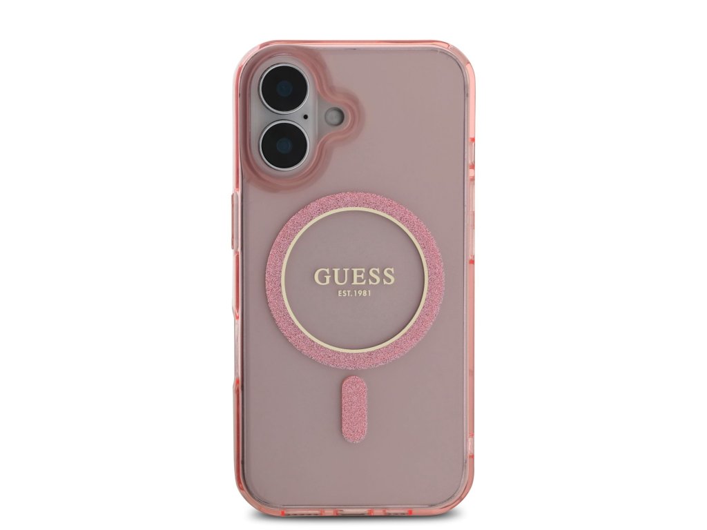 Guess IML Glitter Ring MagSafe Zadní Kryt pro iPhone 16 Pink