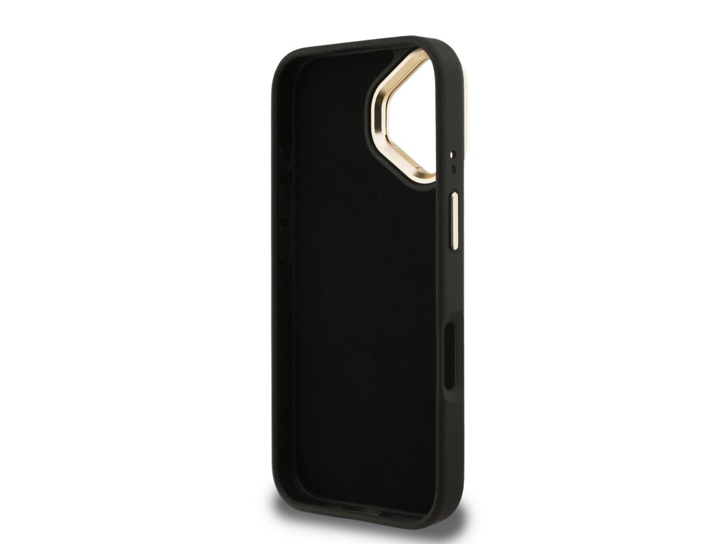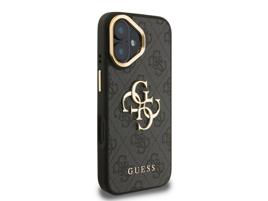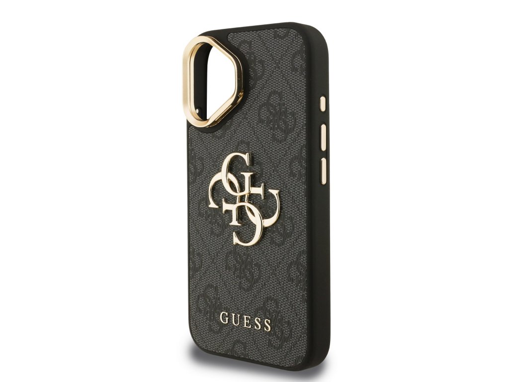 Guess PU 4G Metal Logo Stand Camera Frame Zadní Kryt pro iPhone 16 Black