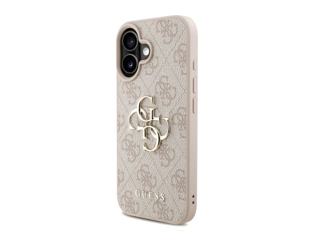 Guess PU 4G Metal Logo Strap Zadní Kryt pro iPhone 16 Pink